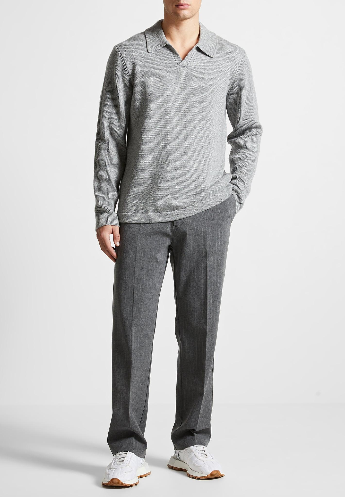 Our Relaxed Fit Pinstripe Tailored Trousers in Grey are the perfect choice for a polished look. Crafted from premium fabric and cut to a slim fit, these pants feature a classic pinstripe pattern and are designed to pair with our Pinstripe Tailored Jacket for a sharp, tailored ensemble. Tailored Silhouette Regular Fit Sleek Design Partially Elasticated Waistband Tailoring Waistband Side Seam Pockets Welt Pockets Silver Manière De Voir Branded Plaque 69% Polyester 29% Rayon 2% ElastaneAlways check the care label for wash instructions.