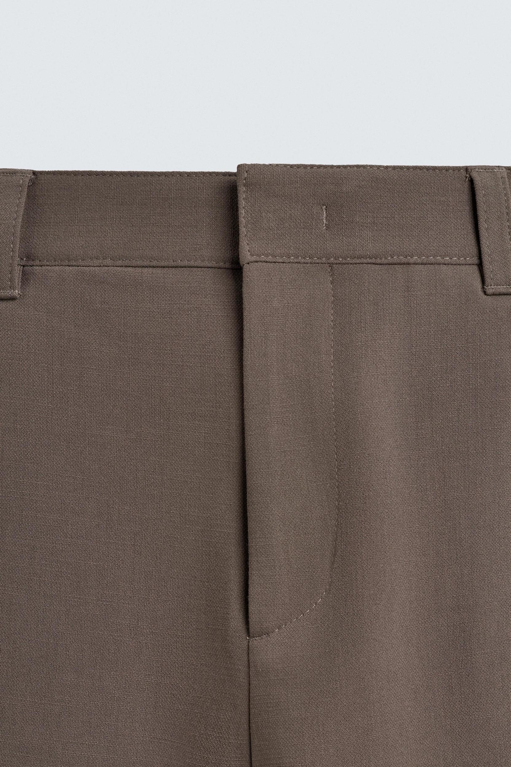 Relaxed fit pants made of viscose fabric. Waistband with side pleats. Front pockets and back welt pockets. Front zip and button closure.