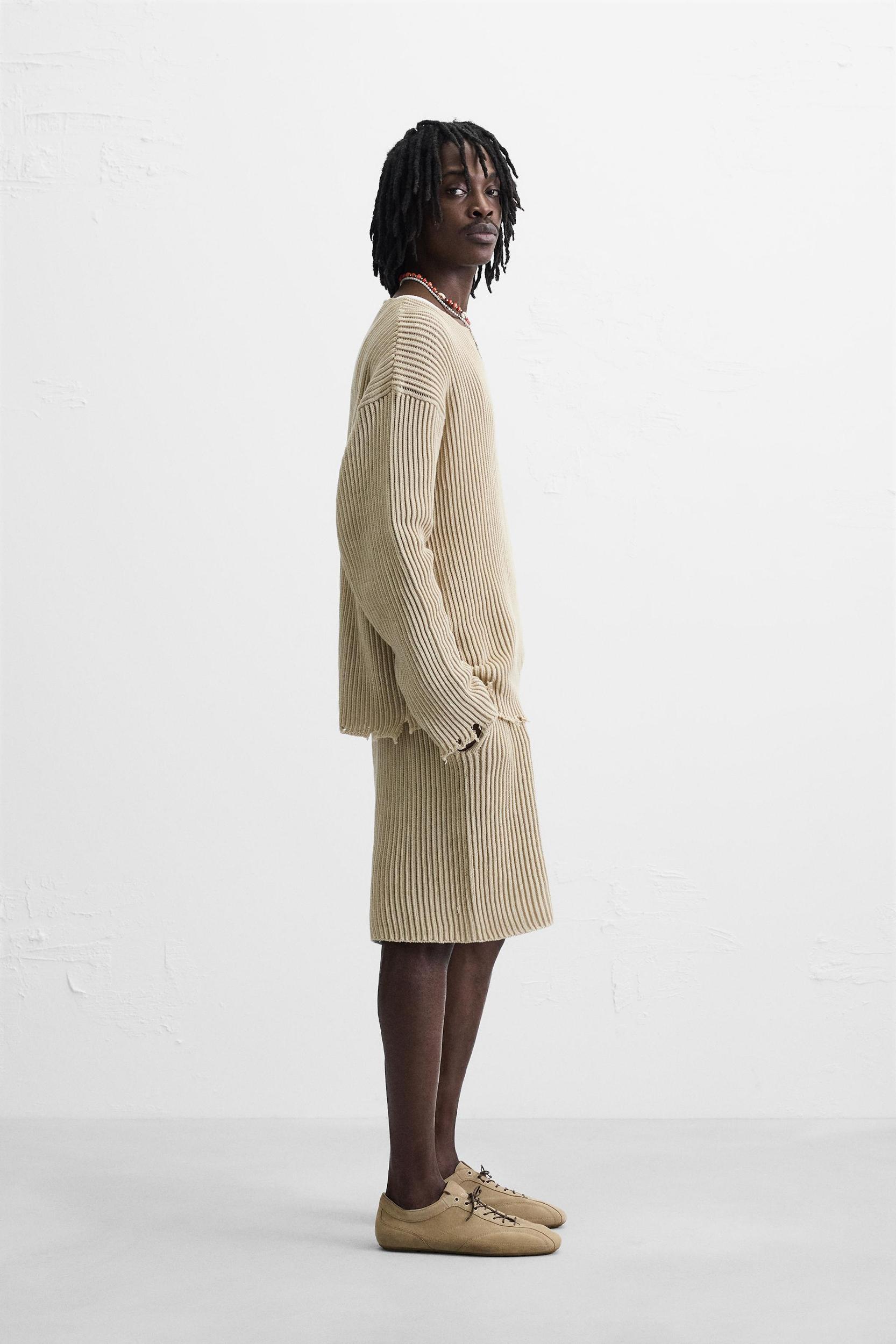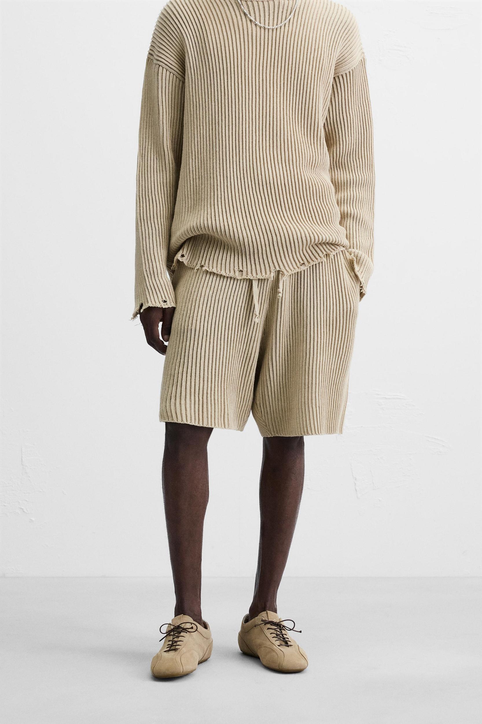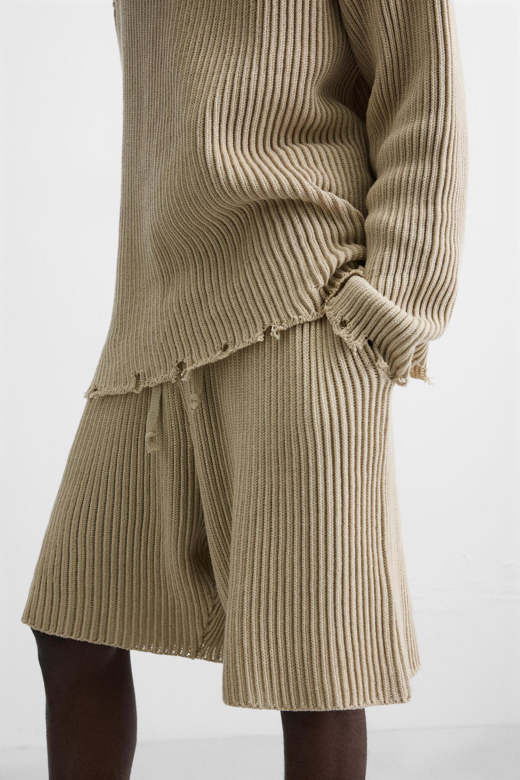 Relaxed fit knit shorts in cotton yarn. Adjustable elastic waistband with drawstring. Side pockets.