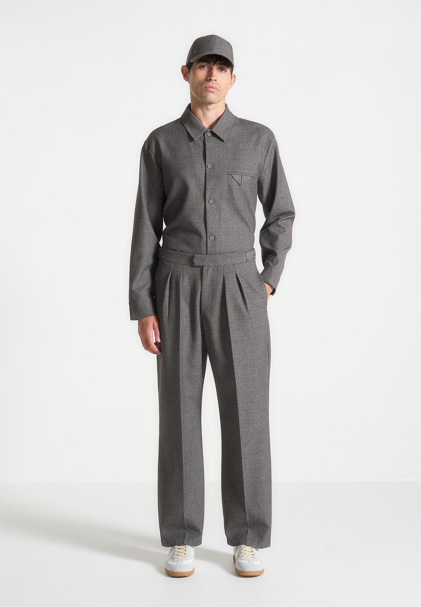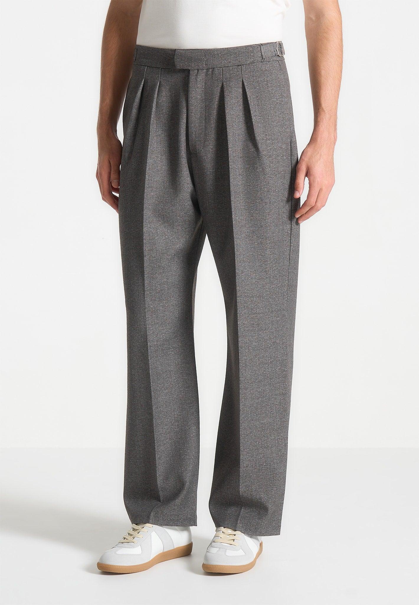 Pierre - Relaxed Fit Textured Pleated Tailored Trousers - Dark Grey Male