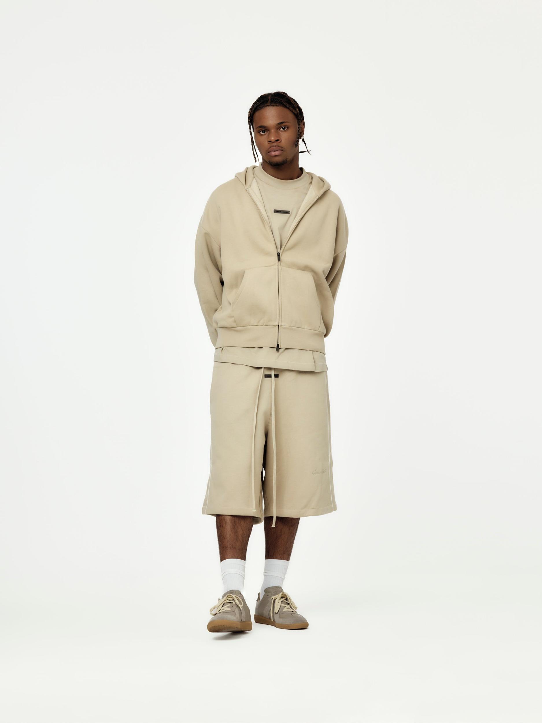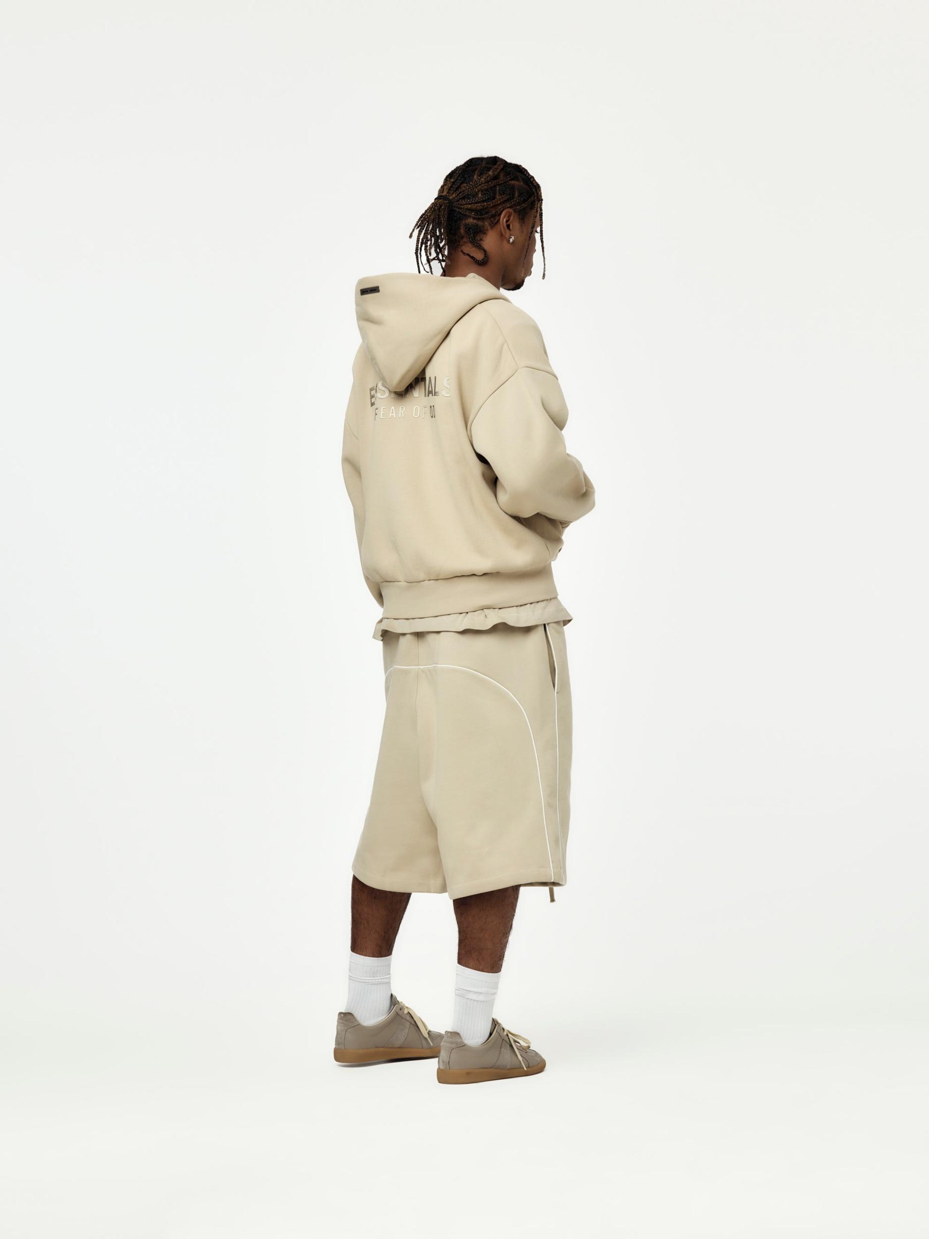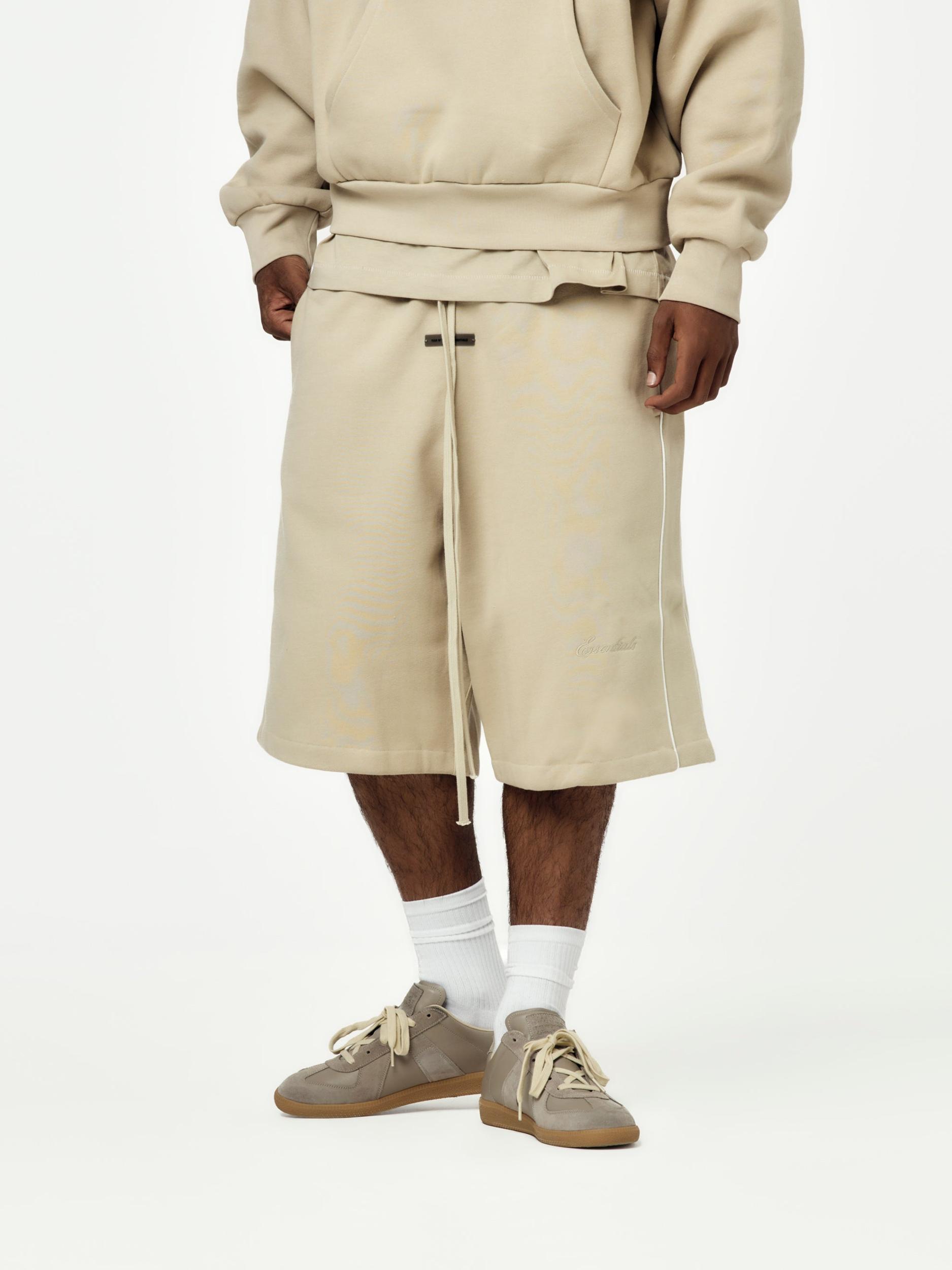 The Fear of God Essentials Relaxed Sweatshort with Piping taps into that throwback '90s basketball energy—baggy, elongated, and built from 380gsm core fleece for structure and comfort. Sportswear-inspired piping details run the seams, giving it just the right amount of contrast. Finished with an embroidered Essentials script logo at the leg and a Fear of God Essentials rubberized label up front. Encased elastic waistband, tonal drawstrings, and side pockets keep it functional. Move how you want. SKU: 160SP254551F