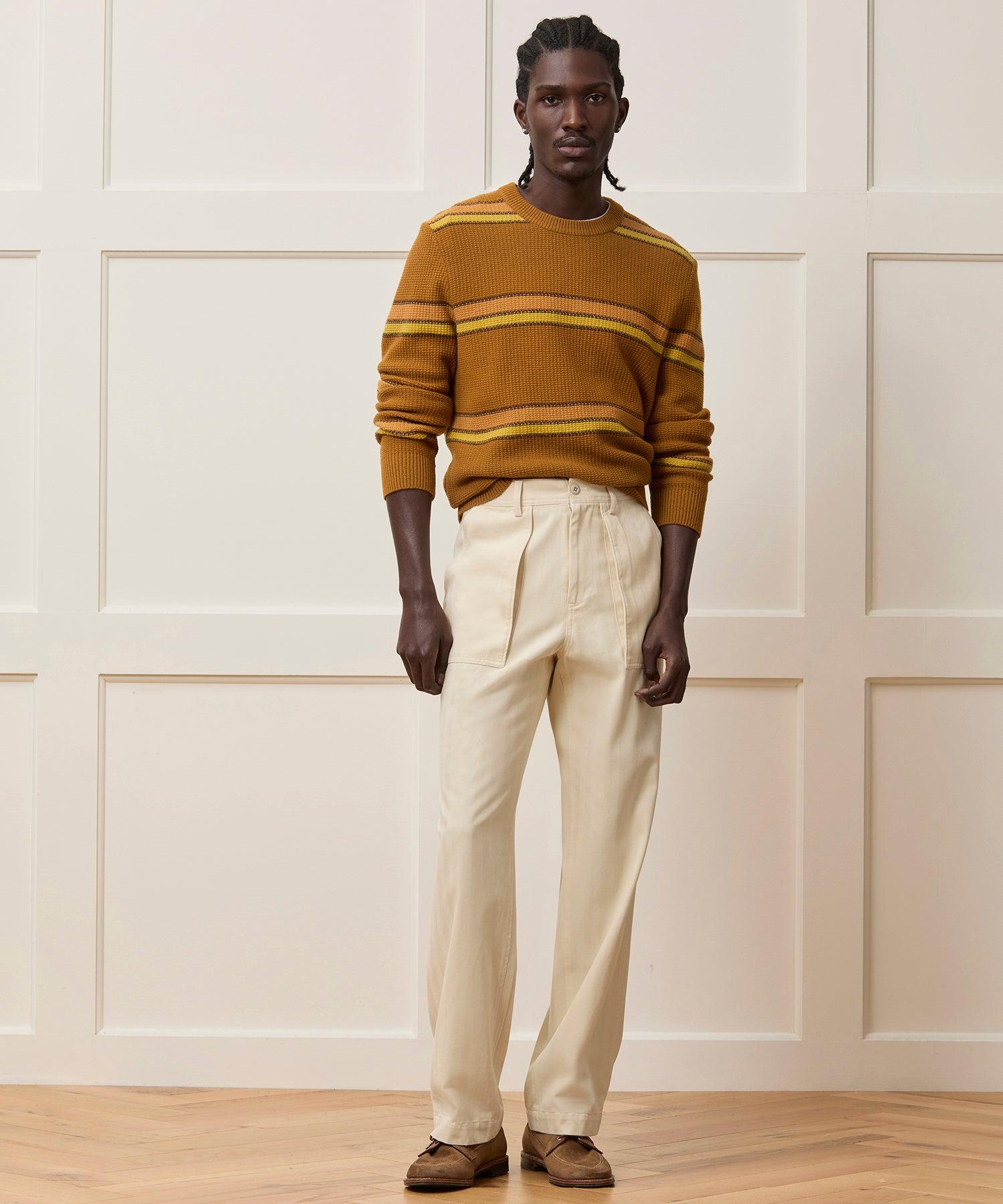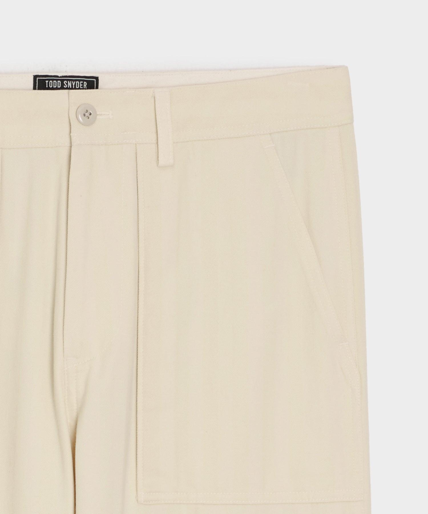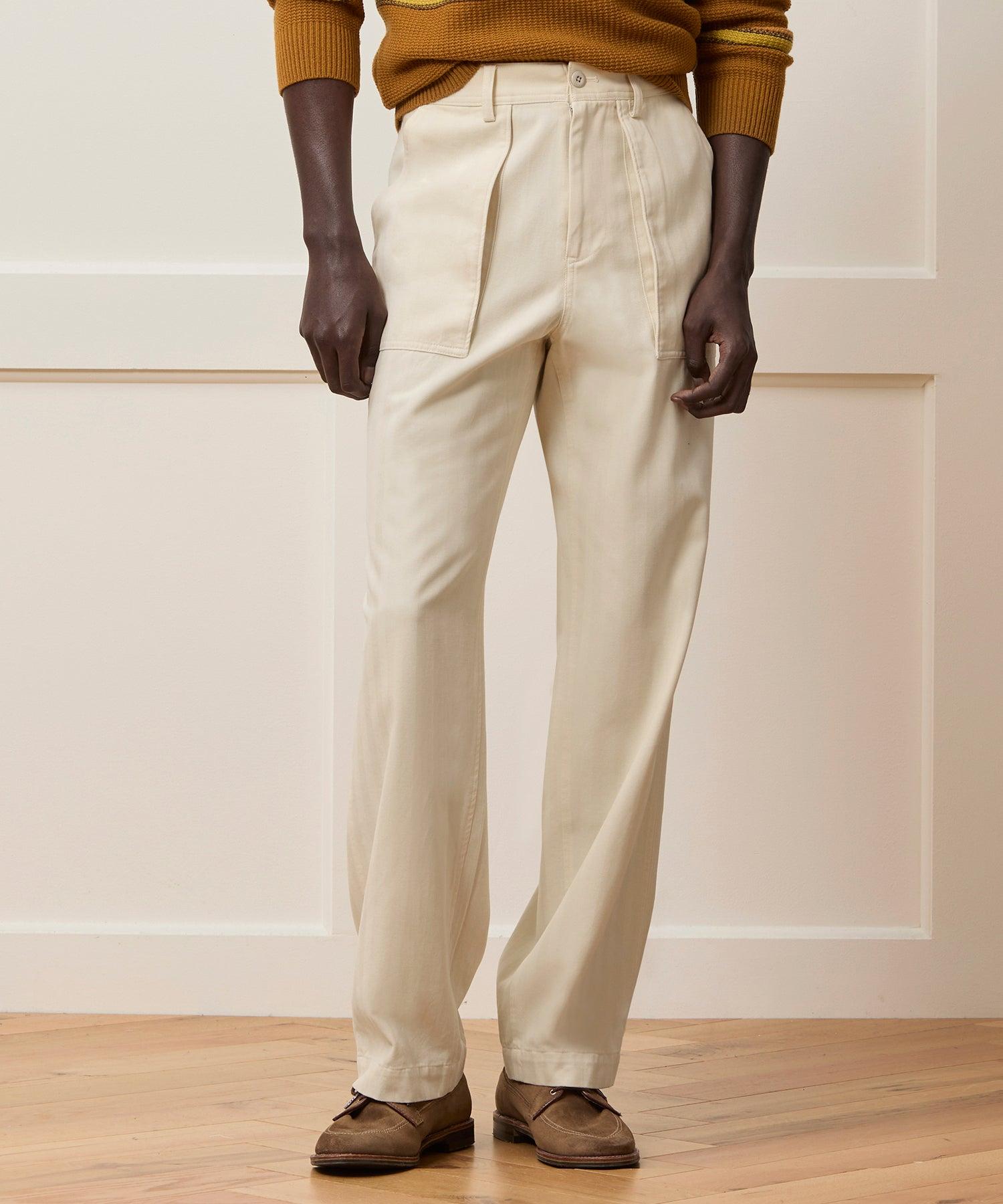 Todd is known for his rugged-yet-refined styles, and these Camp Pants are no exception. Utility-inspired details, like bellowed camp pockets and oversized back pockets, are perfectly contrasted by the sartorial fabric — a cotton-cashmere herringbone twill. With a relaxed, comfortable fit, they’re the perfect way to put a cool, casual spin on a traditional trouser. 97% Cotton, 3% Cashmere Relaxed Fit Model is 6'2" and is wearing a size 32/34 Leg Opening (Based on Size 32W): 18.5” Belt Loops Zip Fly Bellowed Camp Pockets Button-Through Back Patch Pockets Fabric from Italy Garment Made in Vietnam Machine Wash Cold With Like Colors. Delicate Cycle. Only Non-Chlorine Bleach When Needed. Lay Flat To Dry. Warm Iron As Needed. Dry Clean Style PA1784870