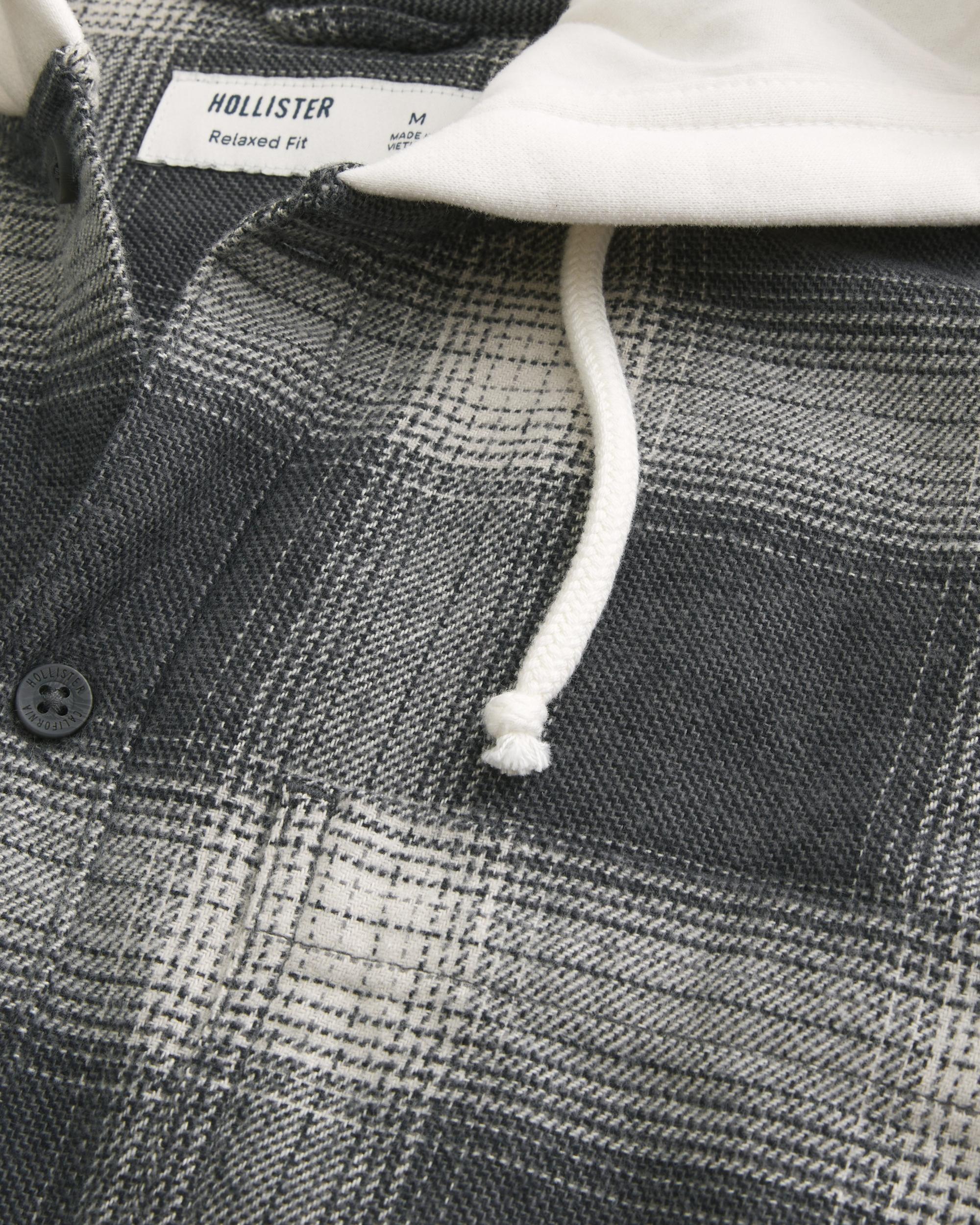 Hollister long sleeve hooded flannel shirt in gray plaid print
