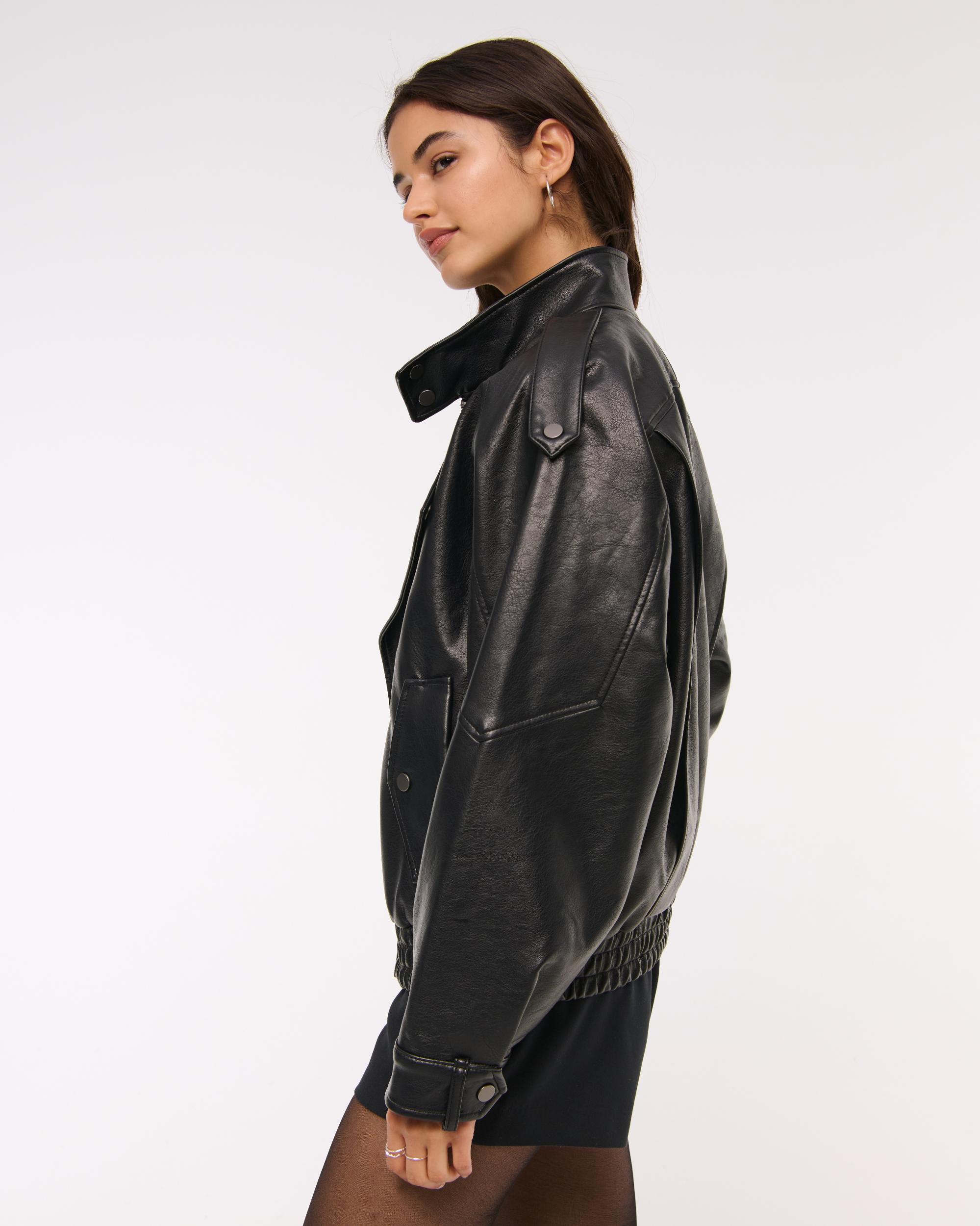 Relaxed Mockneck Vegan Leather Bomber Jacket