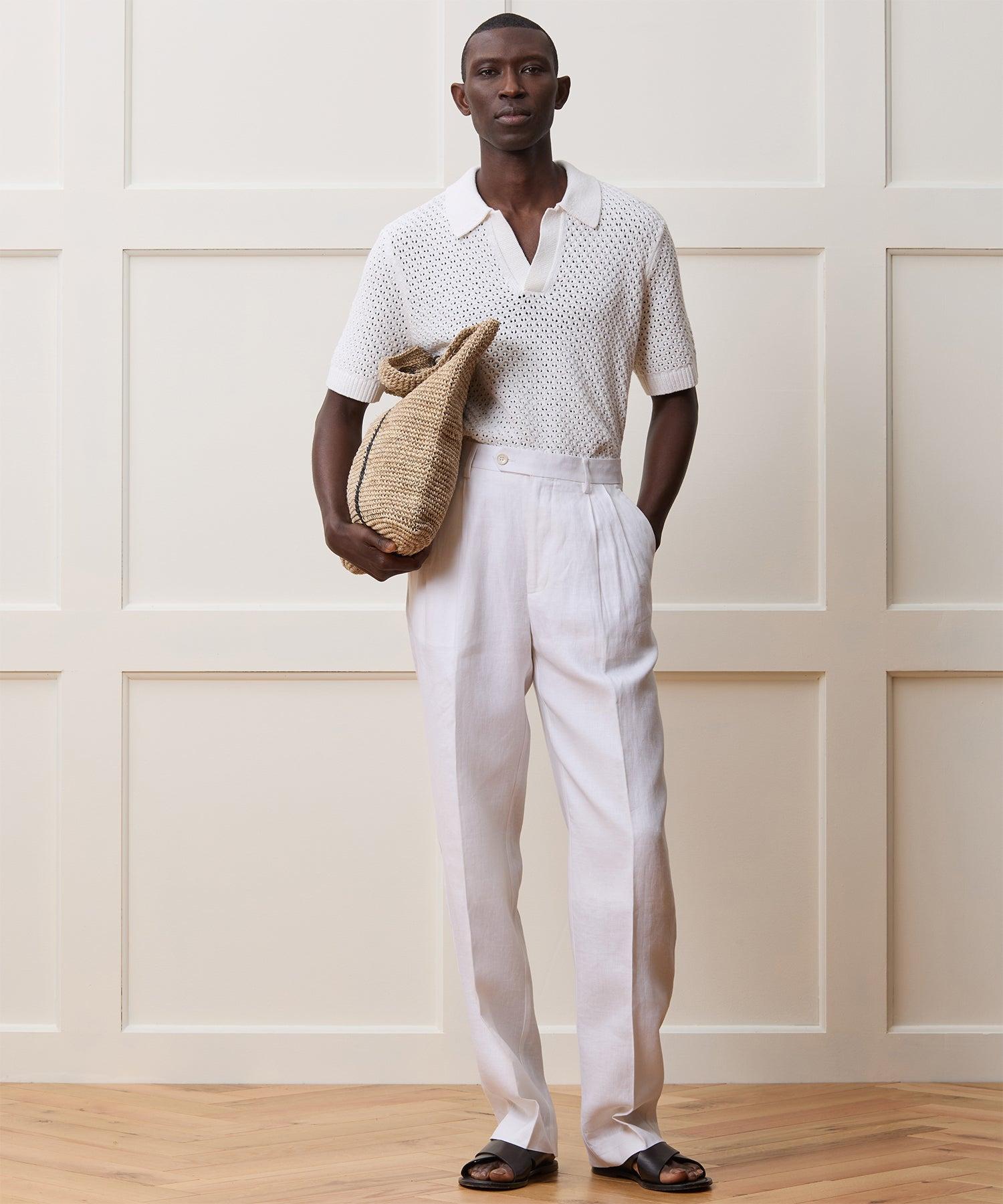 Our bestselling Montauk Polo is back in a relaxed fit. This take is knit from an organic hemp and Supima cotton yarn — the mix of the two keeps this light and breathable (as does the slightly open stitch), and ensures it’ll hold its shape. The easy, laid-back fit is complemented by a full-needle collar and ribbed trim. It’s the perfect resort-ready, vacation-friendly style to toss in your bag, but if you want to tone things down for the rest of the time, it layers of a tank well, too. 40% Organic Hemp, 60% Supima Cotton Relaxed Fit Buttonless Johnny Collar 2x2 Ribbed Trim Made in China Dry clean or hand wash with like colors. Do not bleach. Lay flat to dry. Cool iron if needed. Style SW5670211