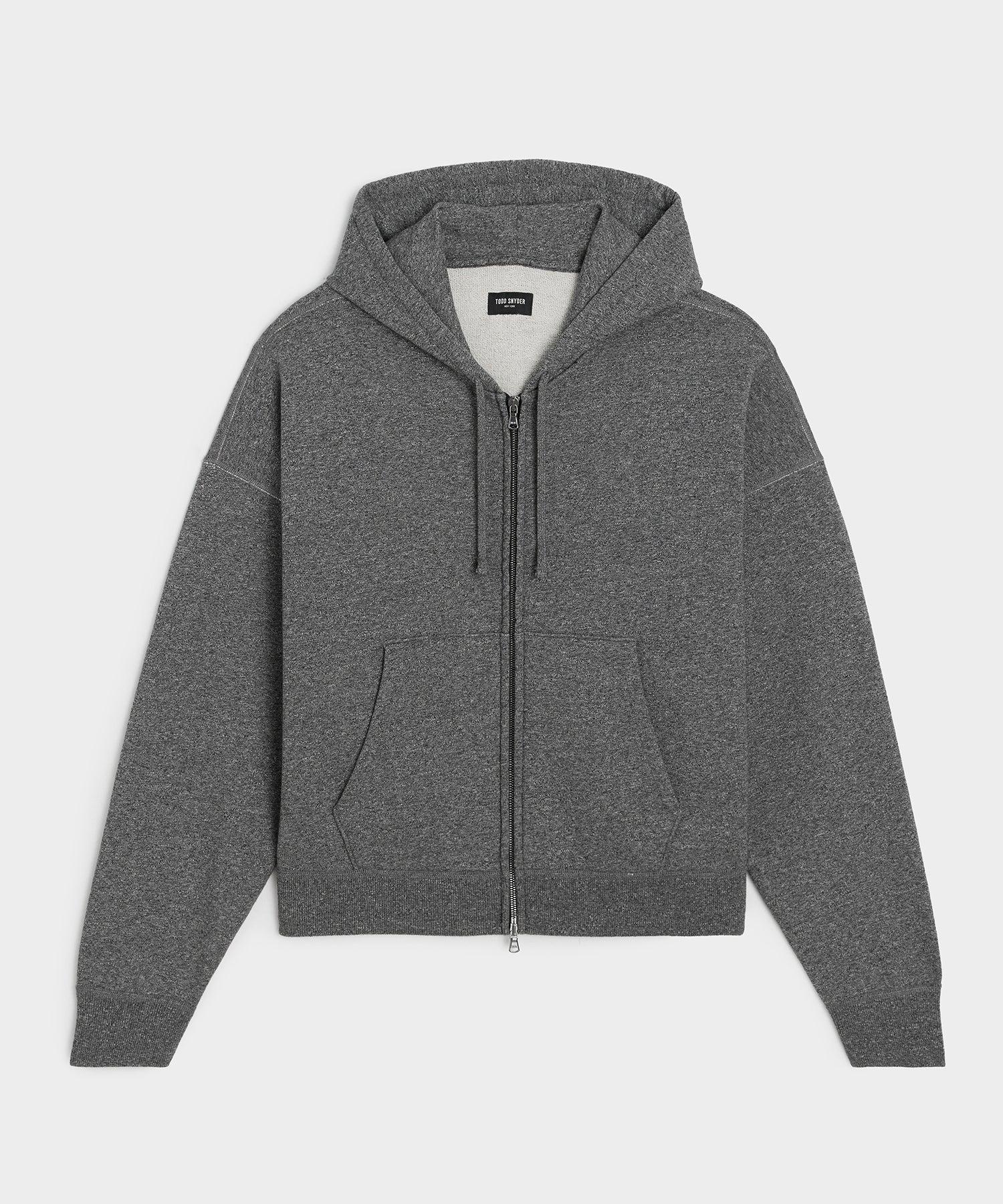 Timeless comfort meets modern style in this Terry Hoodie. The Portuguese cotton terry clocks in at a heavy 435 grams per square meter, and has an old-school handfeel: dry and dense, but soft. The ribbing at the cuffs and hem and the sturdy, double-layered drawstring hood continue the vintage-inspired detailing. A clean, minimal silhouette lets the on-trend, slightly cropped fit take center stage. Matching Sweatpants Available 100% Cotton Relaxed Fit Model is 6'2" and is wearing a size Medium 2-Way Metal Zipper Drawstring Double-Layered Hood Hand Pockets 2x2 Ribbing at Cuffs and Hem Flatlocked Seams Garment Made in Portugal Machine Wash With Like Colors. Do Not Bleach. Tumble Dry Low. Warm Iron As Needed. Do Not Dry Clean Style KN7310683