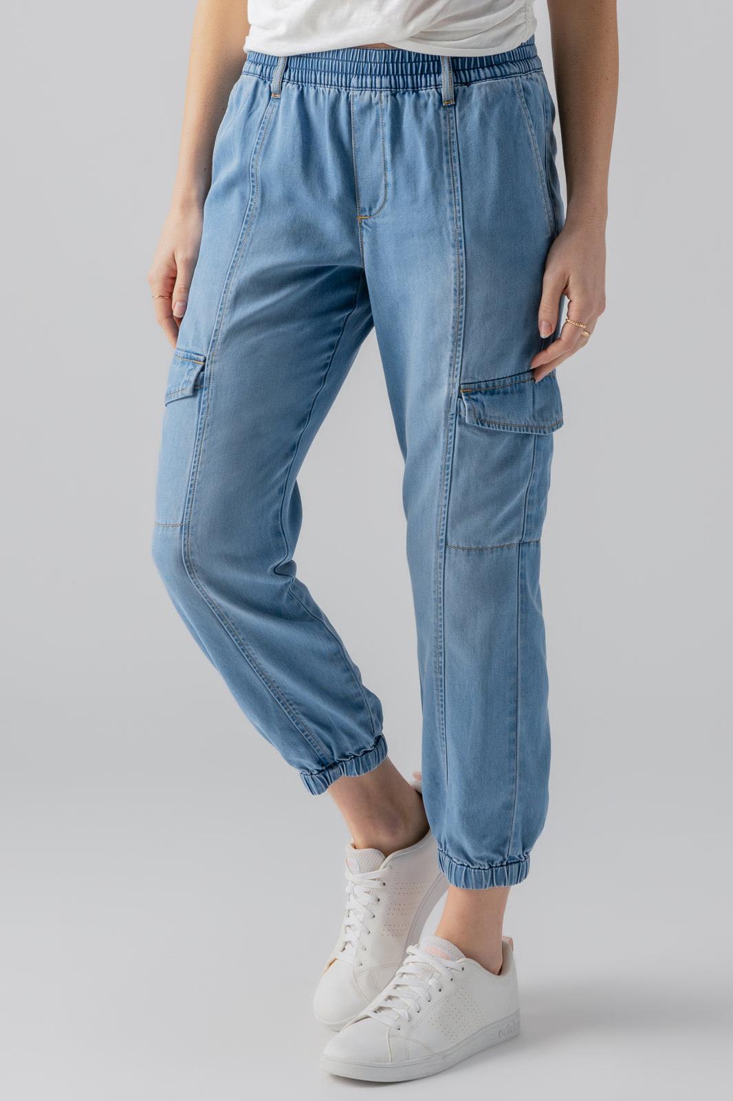 Tapered Cargo Pants with Elastic Waistband 2 Front and 2 Back, and 2 Side Cargo Pockets Pull-On Relaxed Fit