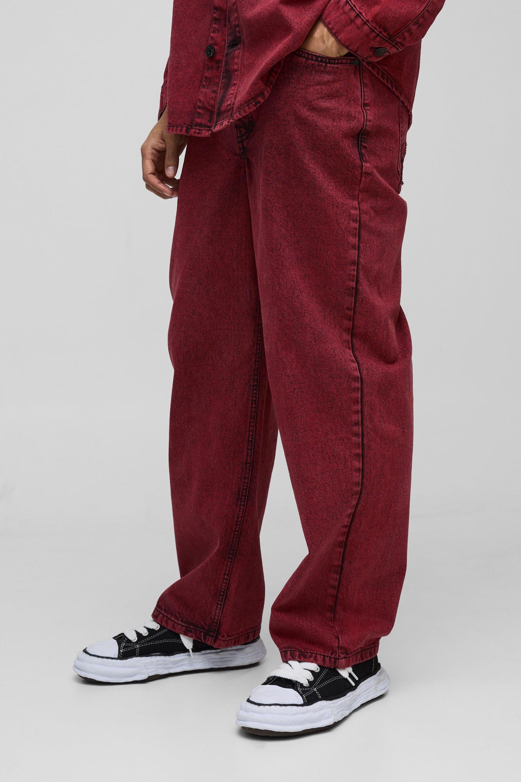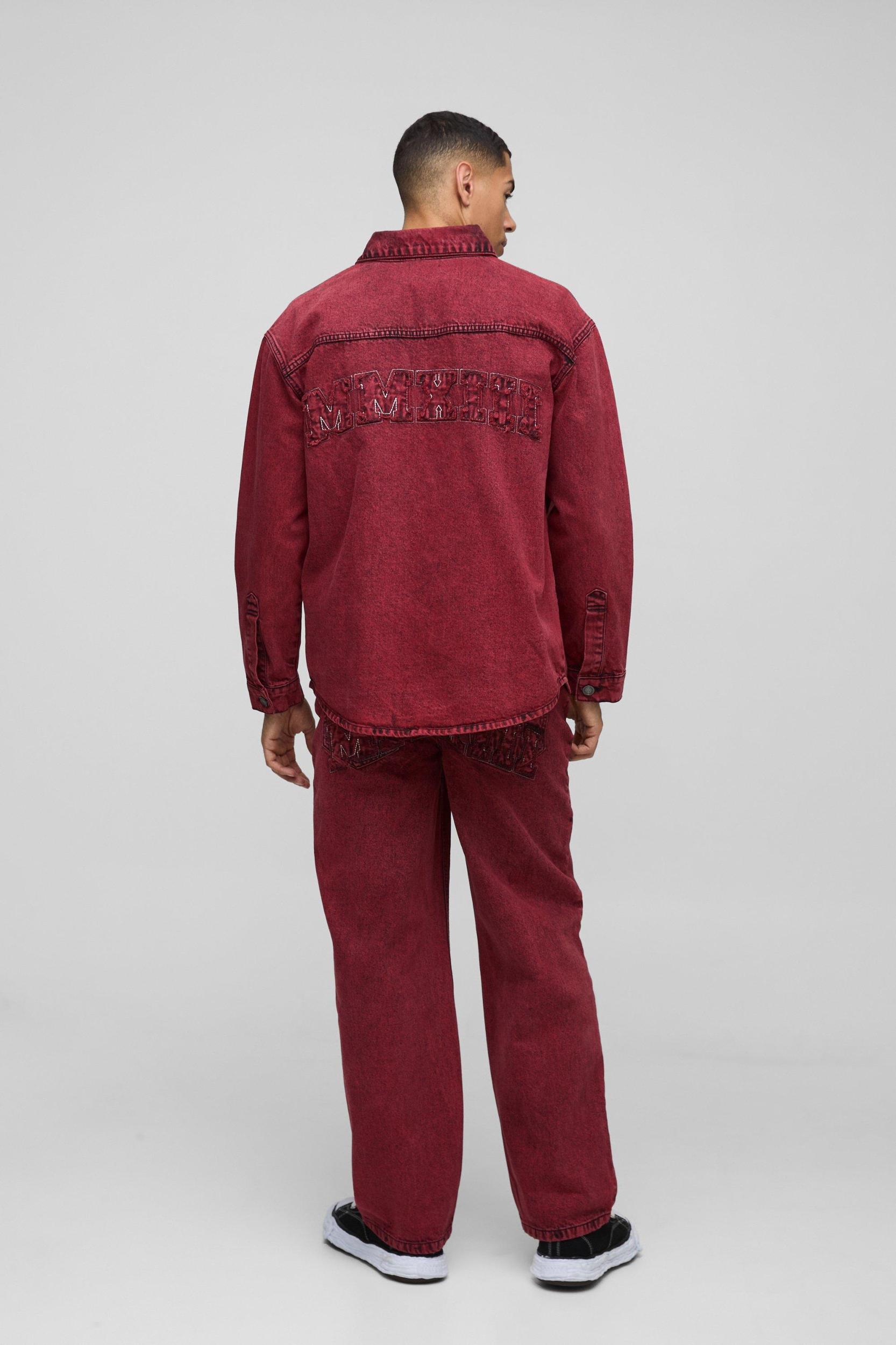 Relaxed Rigid Acid Wash Applique Denim Jeans | boohooMAN USA