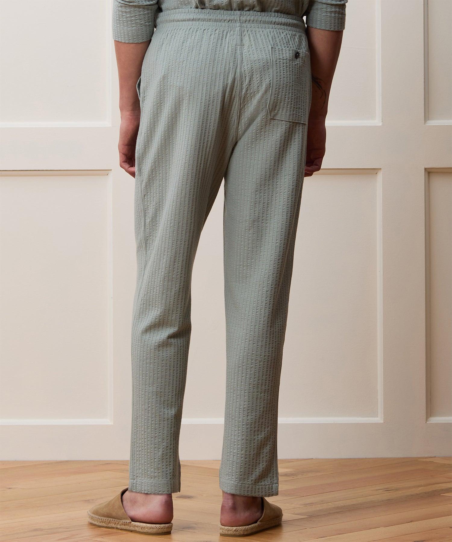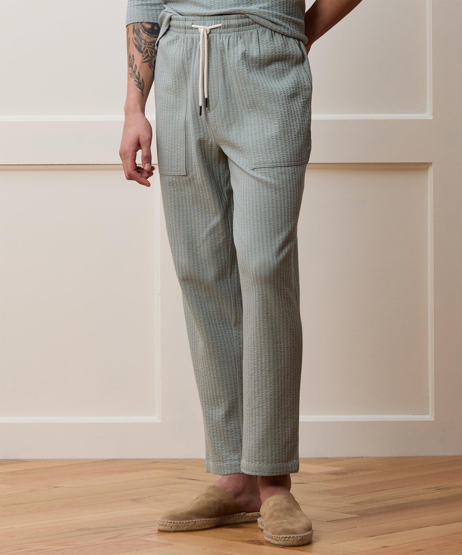 Channel endless summer vibes without sacrificing any style points in these easy pants. The garment-dyed cotton has a soft, t-shirt-like feel, but the seersucker itself adds just enough polish to this relaxed style that, in a pinch, you could cuff them, toss on a button-down and go out to dinner. Comfort is the name of the game, though, with an elastic waist, concealable cotton drawcord and a relaxed fit through the legs. PS: There’s a matching Knit Seersucker Polo, if you’re in the market for a set. Matching Seersucker Polo Available 100% BCI Cotton Straight Fit Elastic Waist Conceable Drawcord Faux Fly Detailing Applied Patch Pockets at Hip One Back Patch Pocket 15” Leg Opening Made in Mauritius Machine wash gentle cycle. Do not bleach. Do not tumble dry. Warm iron if needed. Style KN2340425