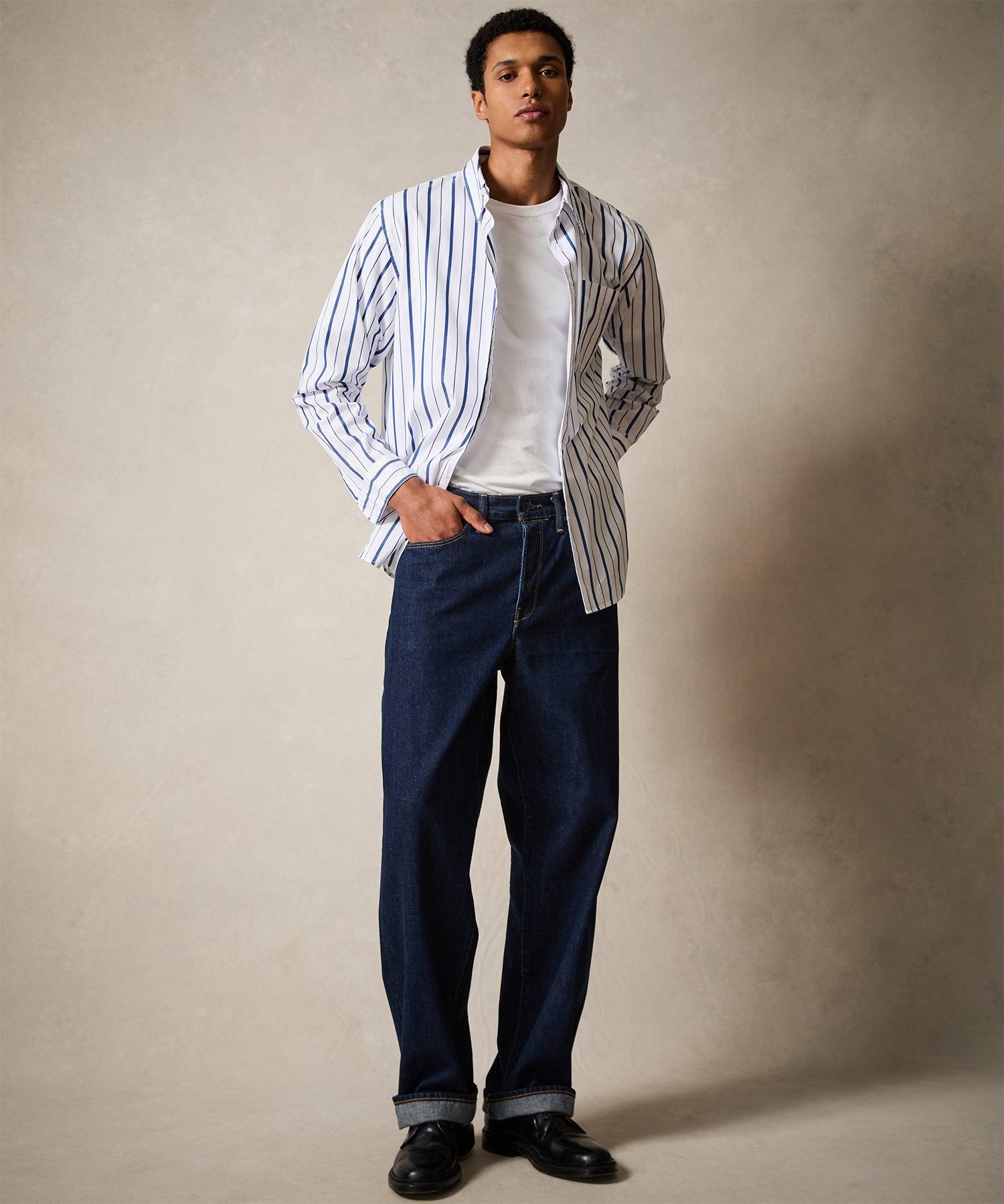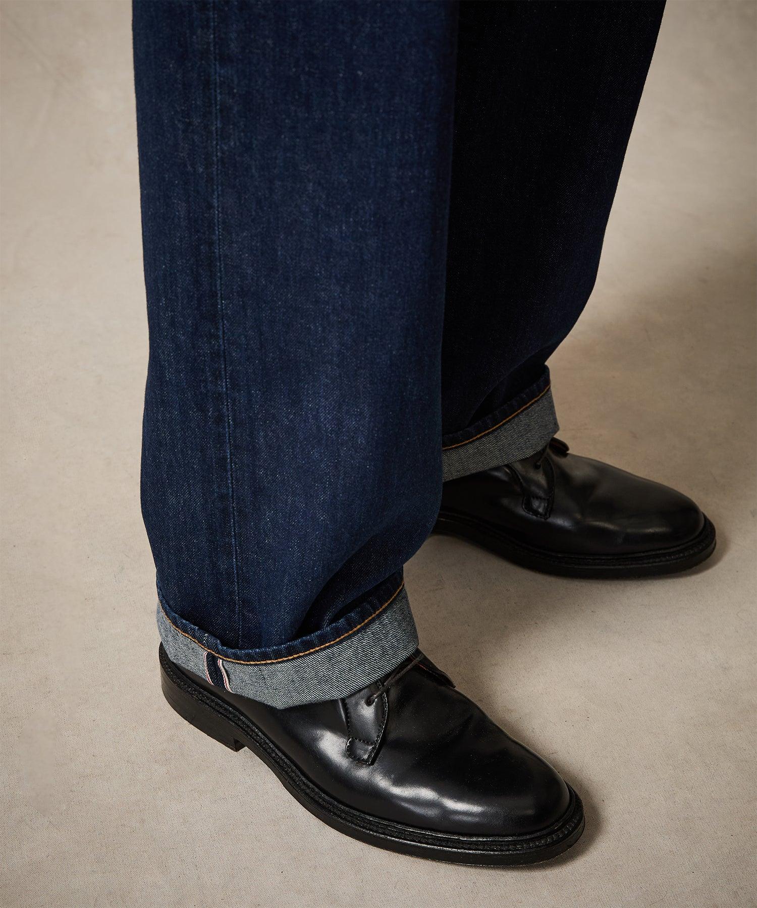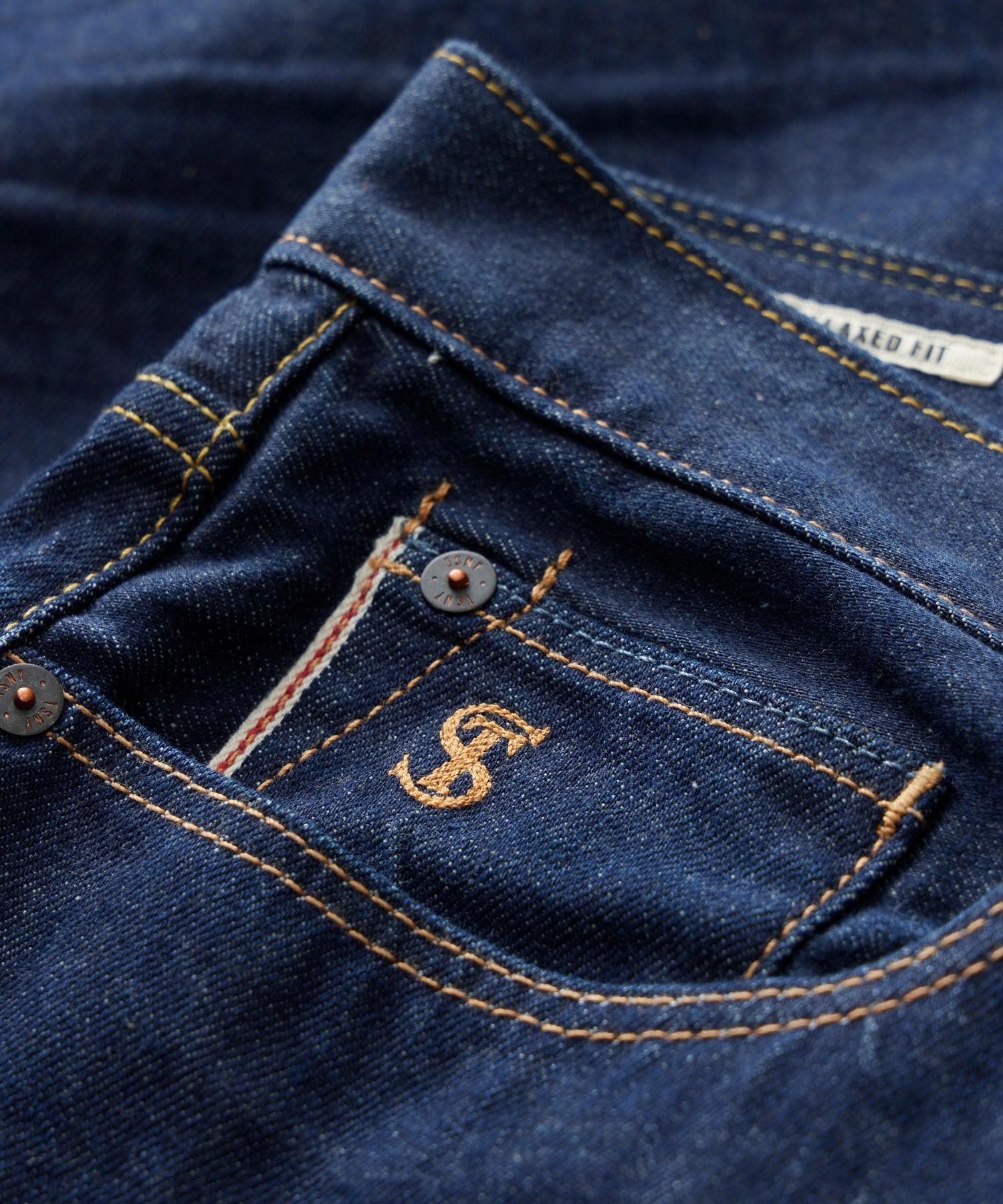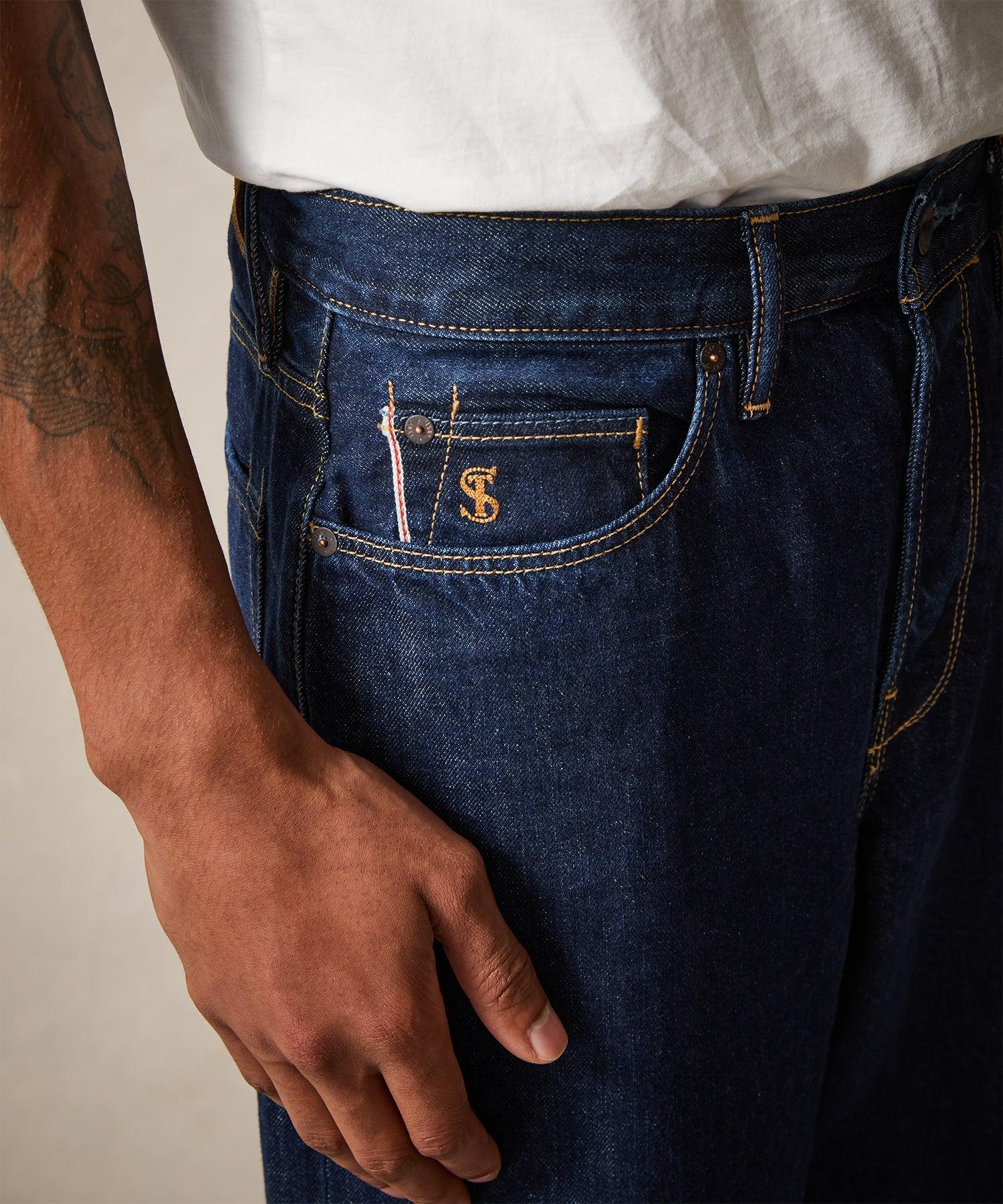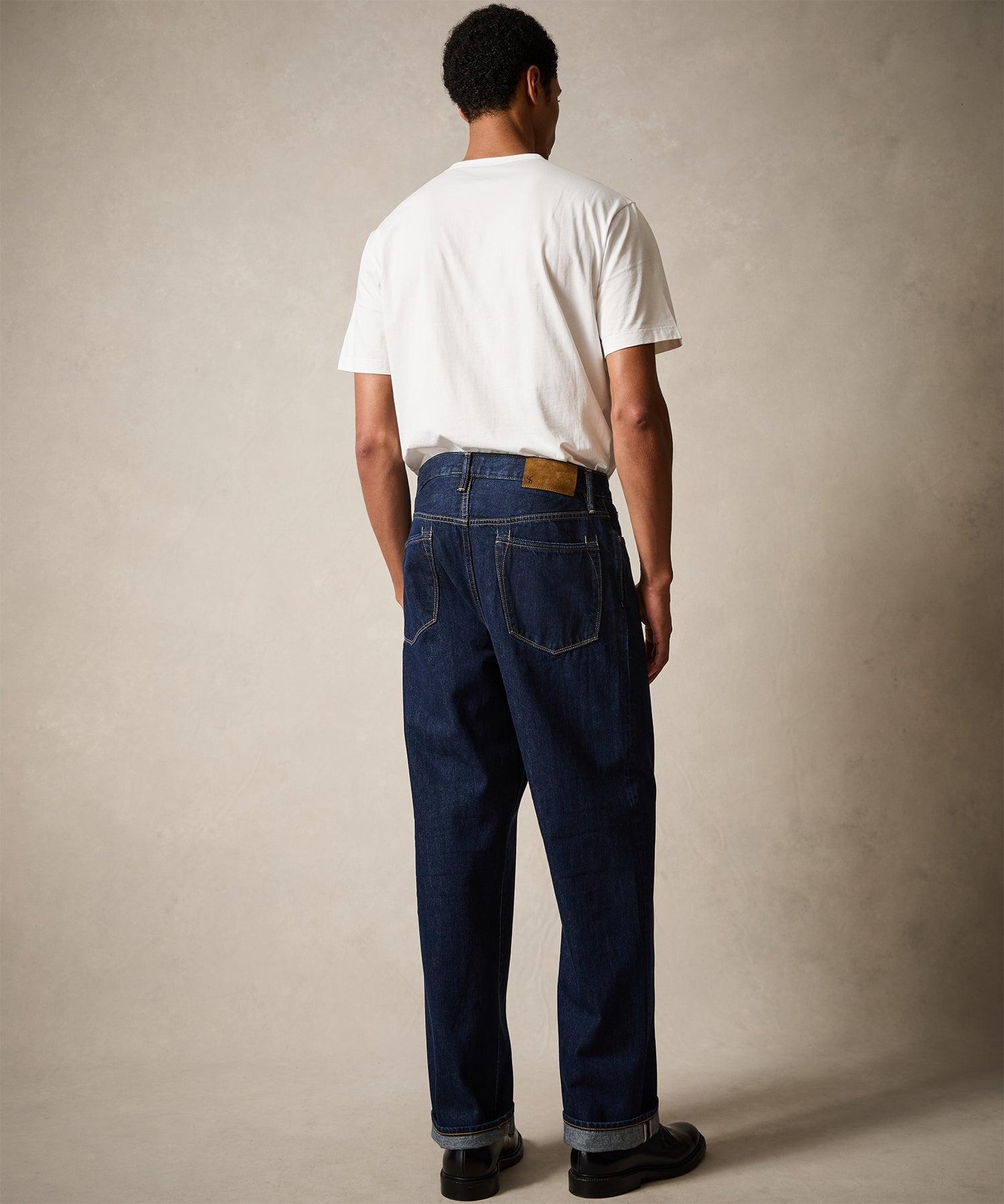 Our Selvedge jeans are 100% cotton (and 100% classic), loaded with quality, vintage-inspired details, including a shank button fly and oxidized rivets. There are also genuine selvedge outseams; when you turn up your cuff, you'll spot that giveaway red ticking at the edge. Relaxed Fit is on-trend, roomy but clean with a full stovepipe leg. All told it's about an inch bigger through the thigh, knee and rise than Slim. Indigo Rinse is a flat, true classic blue with the look of gently worn-in raw denim. 100% Cotton ; 12.5 oz Denim ; Relaxed Fit ; Leg Opening (Based on Size 32W): 18.5 ; Room up Top, Full Stovepipe Leg ; Shank Button Fly ; Genuine Selvedge ; Classic 5-Pocket Construction; Oxidized Rivets ; Chain Stitching at the Coin Pocket ; Made in Vietnam ; Machine wash cold. Do not bleach. Dry flat, iron low. ; Style JE129239 ;
