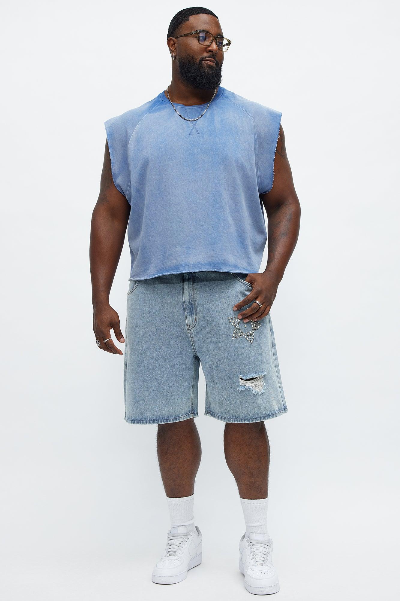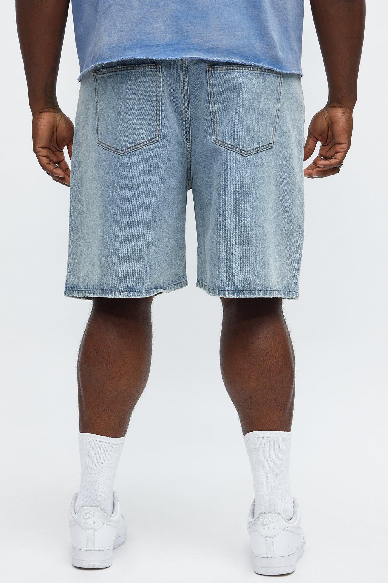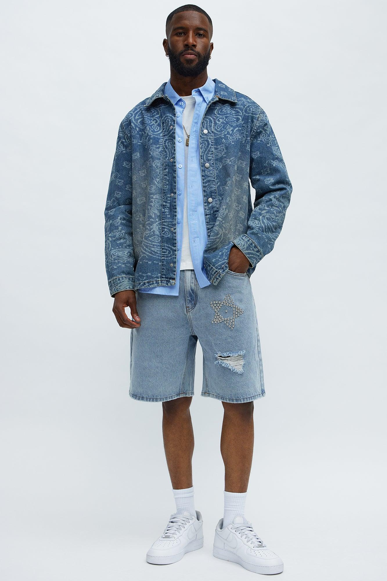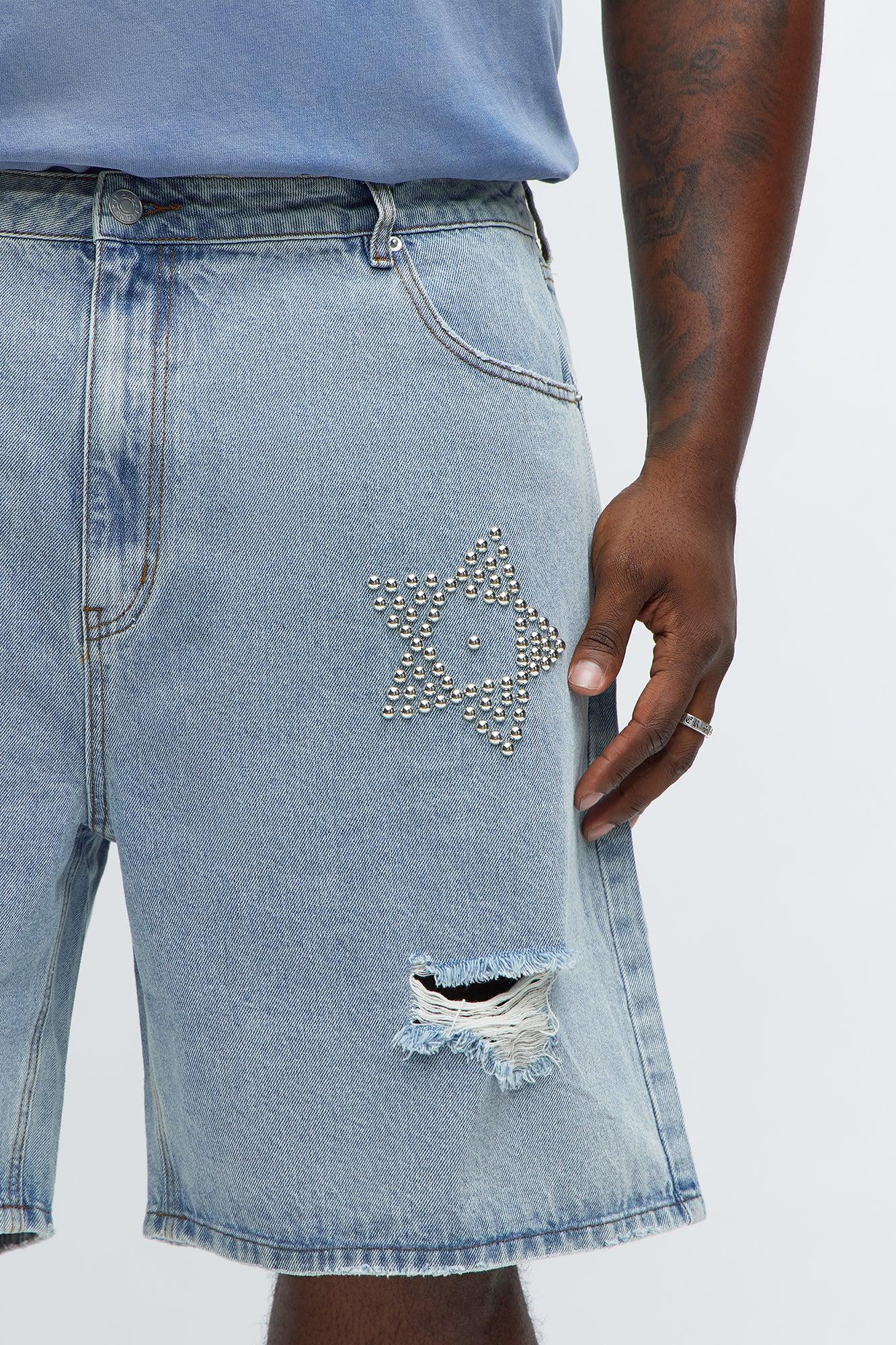 Relaxed Star Studded Denim Shorts - Light Blue Wash