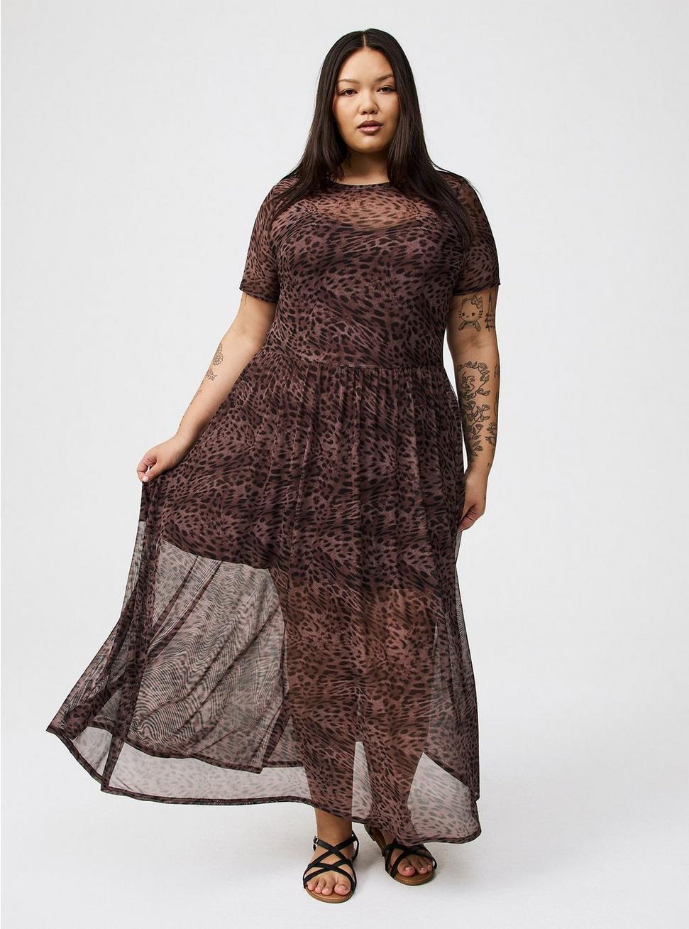 Relaxed Tea Length Mesh T-Shirt Dress