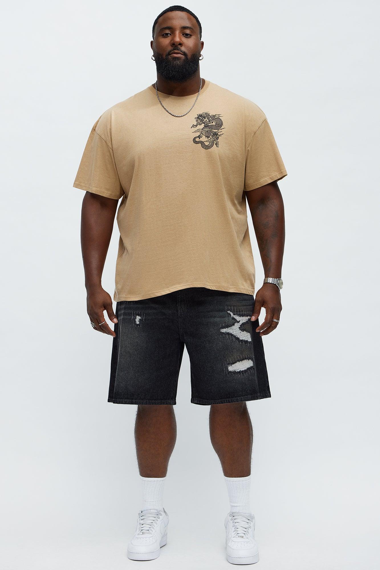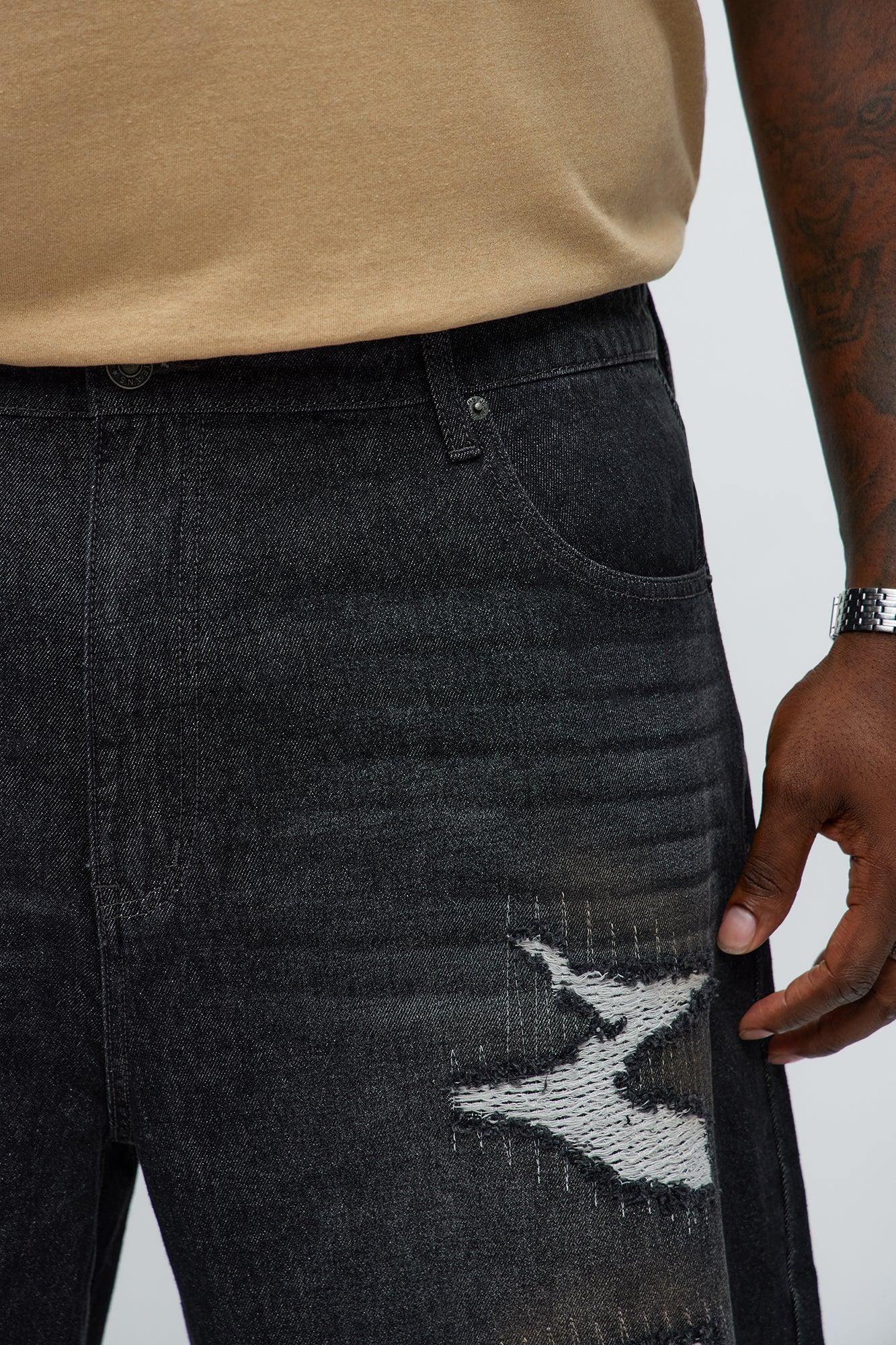 Relaxed Vandal Stitch Distressed Denim Shorts - Black Wash Male