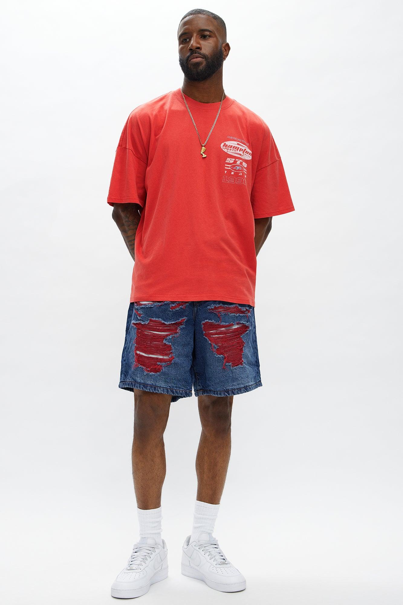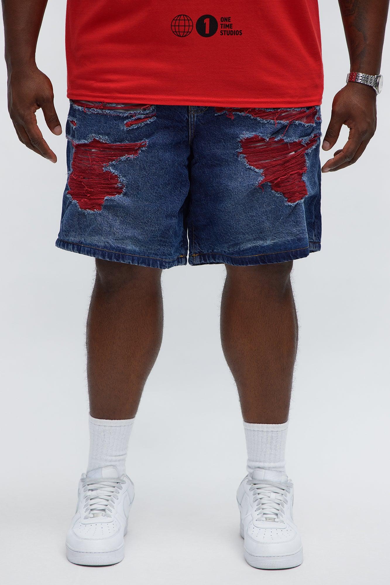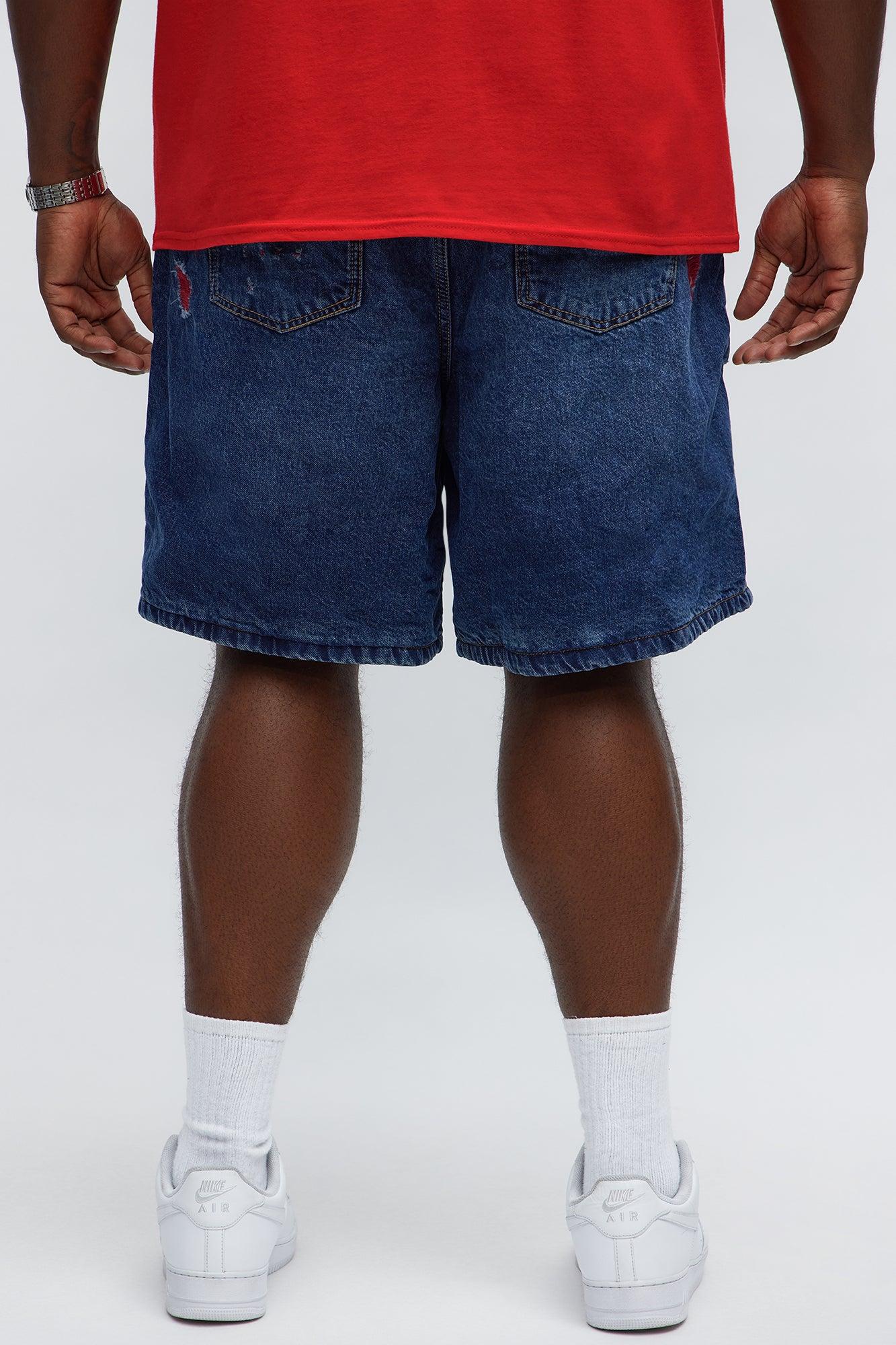 Relaxed We In These Streets Destroyed Denim Shorts - Dark Wash Male