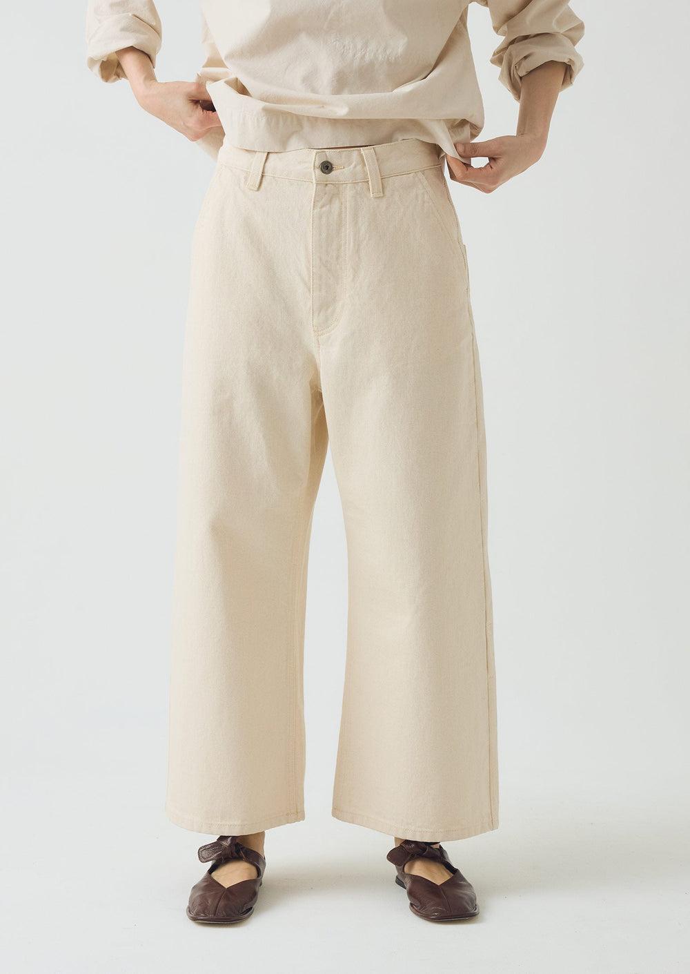 Our wide leg pants are made from regenerative denim grown in Türkiye. Our regenerative cotton is grown in Türkiye without harmful pesticides, improving soil health and farmer well-being. This method supports sustainable, high-quality denim production with minimal environmental impact. Sitting on the hip, this weighty denim defines the relaxed silhouette, complemented by slanted side pockets. Large patch pockets are inspired by workwear styles. Finished with twin stitching.