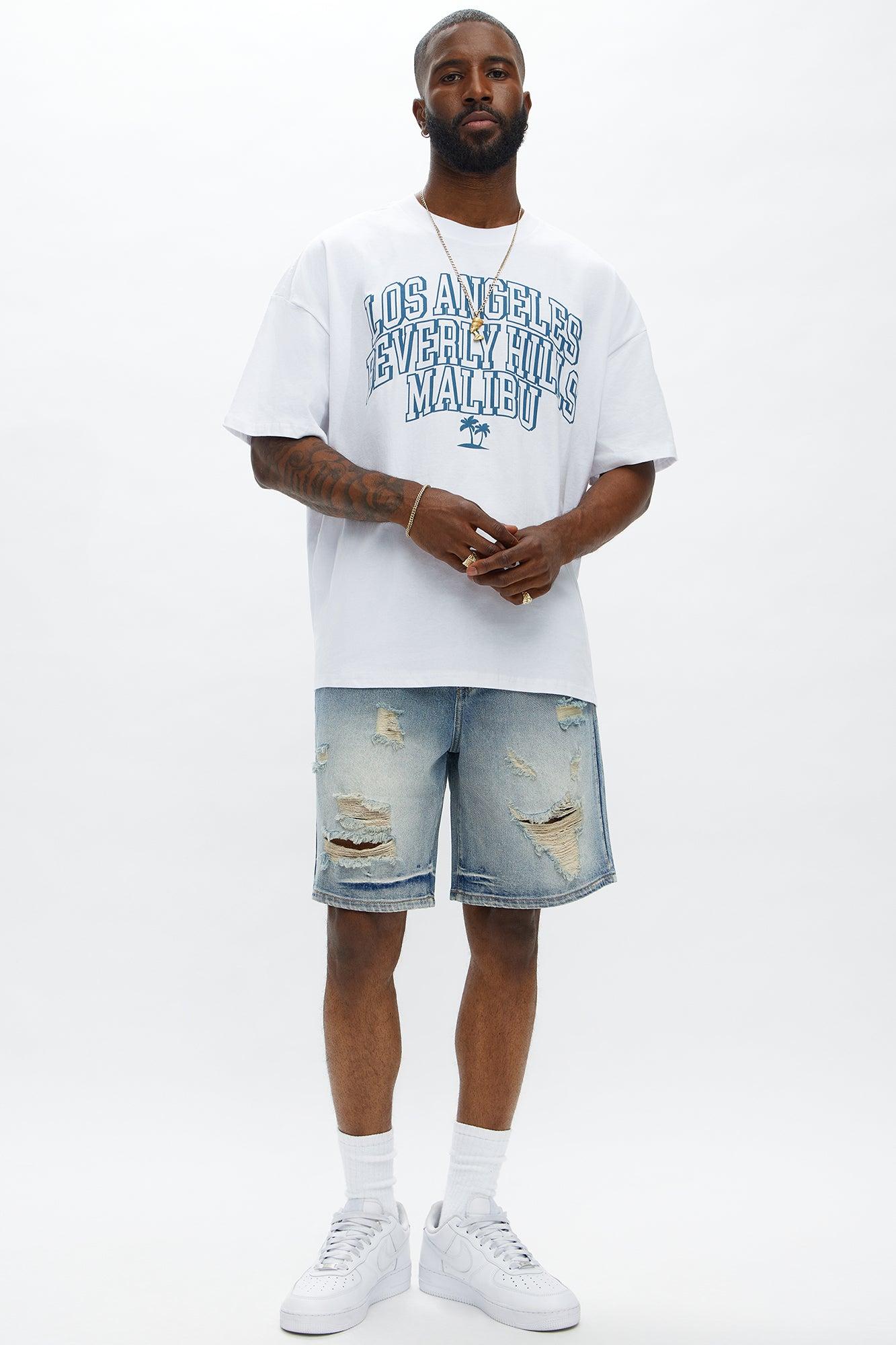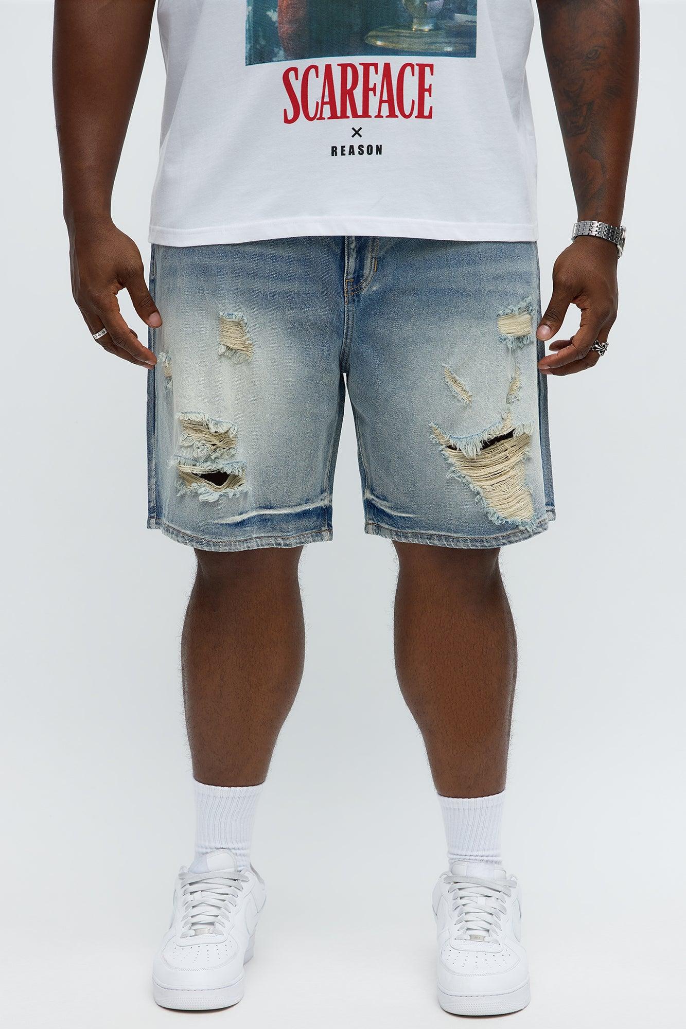 Available In Medium Blue Wash. Relaxed Fit Zip Fly Button Closure 5 Pocket Body Ripped Detail Disclaimer - Due To The Specialized Distressing & Wash Process, Each Garment Is Unique 100% Cotton Imported California Proposition 65WARNING: Cancer and Reproductive Harm - www.P65Warnings.ca.gov.