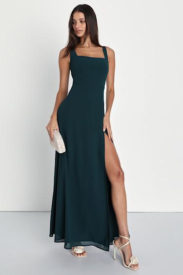 Heads are sure to turn when you step out to dance in the Lulus Remarkable Arrival Emerald Green Sleeveless Maxi Dress! Lightweight woven chiffon shapes this graceful dress that has tank straps and a flattering darted bodice. High, fitted waist sits above a chic and airy skirt that falls to a maxi hem and boasts a stunning side slit. Hidden zipper/clasp at back.