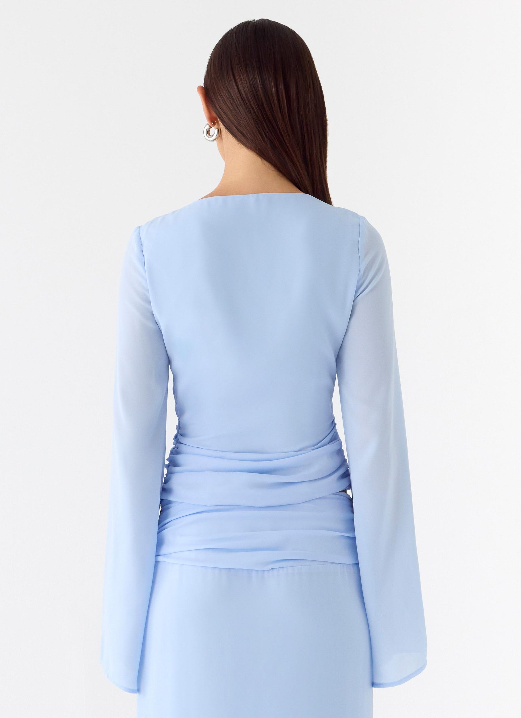 Peppermayo Exclusive The Remee Top is made for warm nights that call for effortless drama. Featuring a flattering V neckline with wrap-style detailing, it shapes the body while creating soft movement through the sleeves. Crafted in lightweight chiffon, it’s designed to flow seamlessly from sunset drinks to late-night plans. - V neckline- Wrap top detailing- Bell sleeve- Side invisible zipper- Fully lined- Fabric: Main 100% Polyester, Lining 100% Polyester Size AU 8 / US 4 garment measurements: Bust: 86 cm / 33.86 inWaist: 70 cm / 27.56 inHem: 88 cm / 34.65 inLength: 53 cm / 20.87 inSleeve length: 70 cm / 27.56 in Roberta is 177cm and wears size AU 6 / size US 2