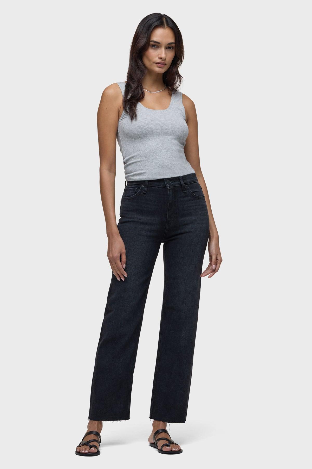 Description The Remi High-Rise Straight Ankle Jean is cut with a flattering high rise and relaxed leg. The Fade To Black wash has subtle grinding along the edges, raw hems and is made from premium stretch denim for an authentic look with added softness and flexibility. Product Details Front Rise: 11.25", Leg Opening: 16.5", Inseam: 28"Model Height 5'9"Model wearing size 25Measurements based on size 27 Fit & Care Content: 95% Cotton, 4% Elastomultiester, 1% ElastaneMachine wash cold with like colorsDo not bleachTumble dry low or hang to dry