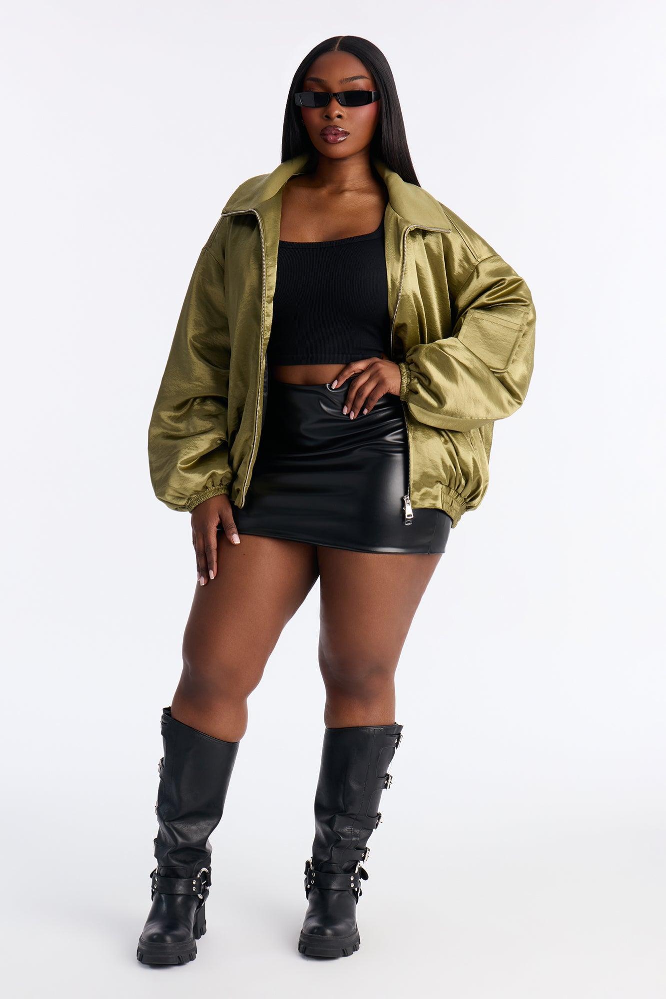 Remy Cargo Satin Bomber Jacket - Olive Female