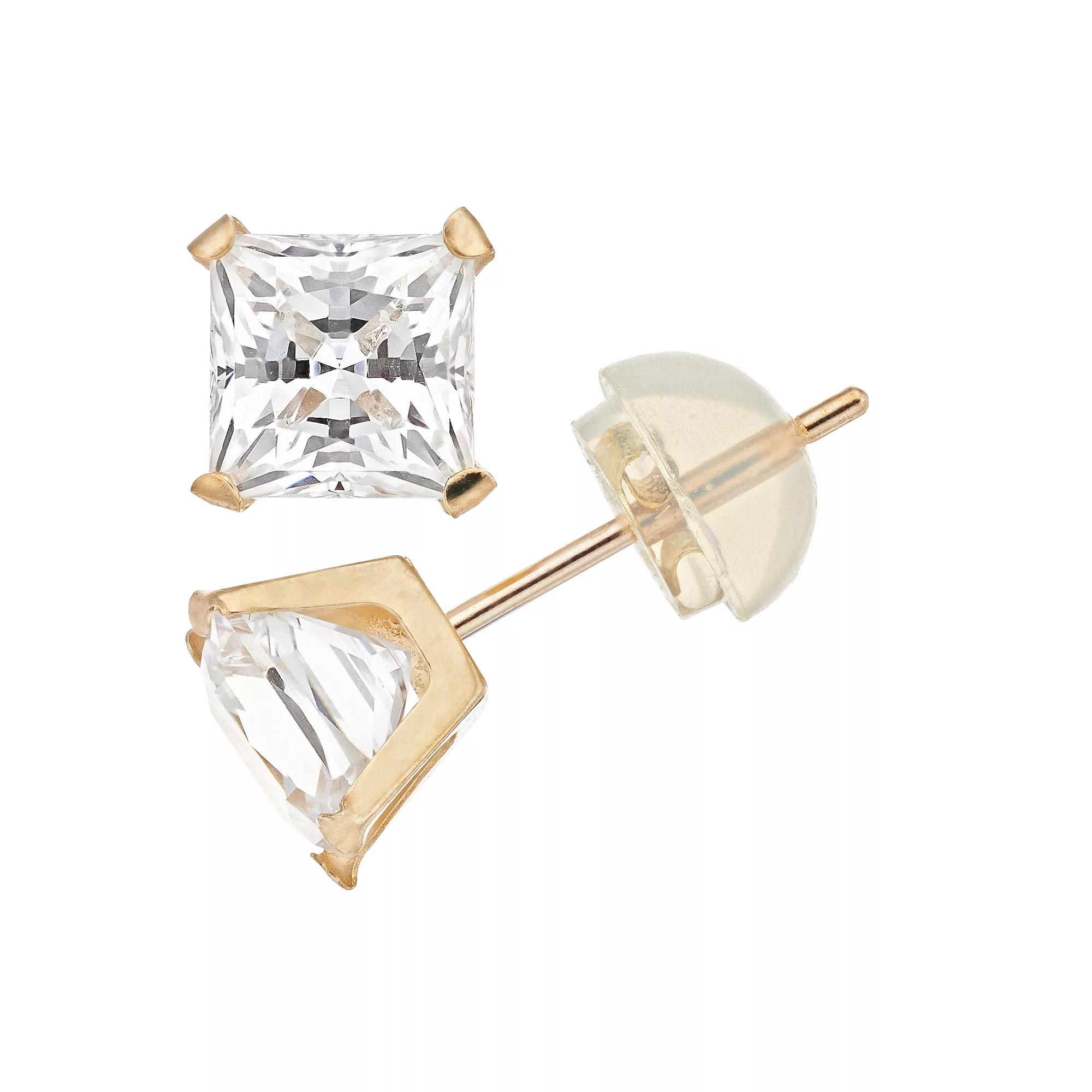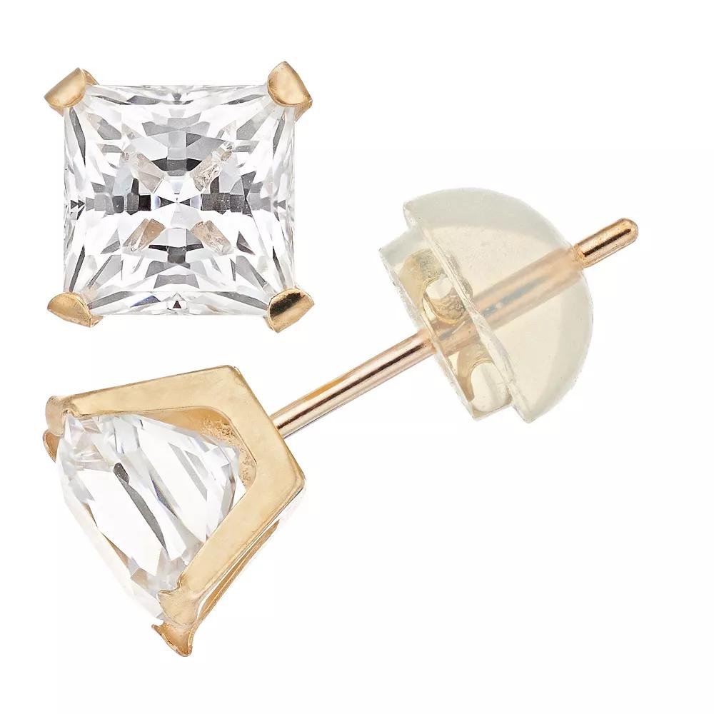 Whether you're at home, at the office, or at a special event, these Renaissance Collection cubic zirconia studs are the perfect accessory for any occasion. Whether you're at home, at the office, or at a special event, these Renaissance Collection cubic zirconia studs are the perfect accessory for any occasion. Length: 13.63 mm Backings: push-on screw-off Metal: 10k gold Finish: polished Packaging: boxedSTONE DETAILS Stone type: cubic zirconia Total weight: 1 1/2 ct. Center stone weight: 3/4 ct. Center stone size: 5 mm x 5 mm Shape: square Setting: prong Gemstones may have been treated to enhance their appearance. Special care may be required. Please visit our Gemstone Treatment & Special Care Guide for more information. Color: White. Gender: female. Age Group: adult.