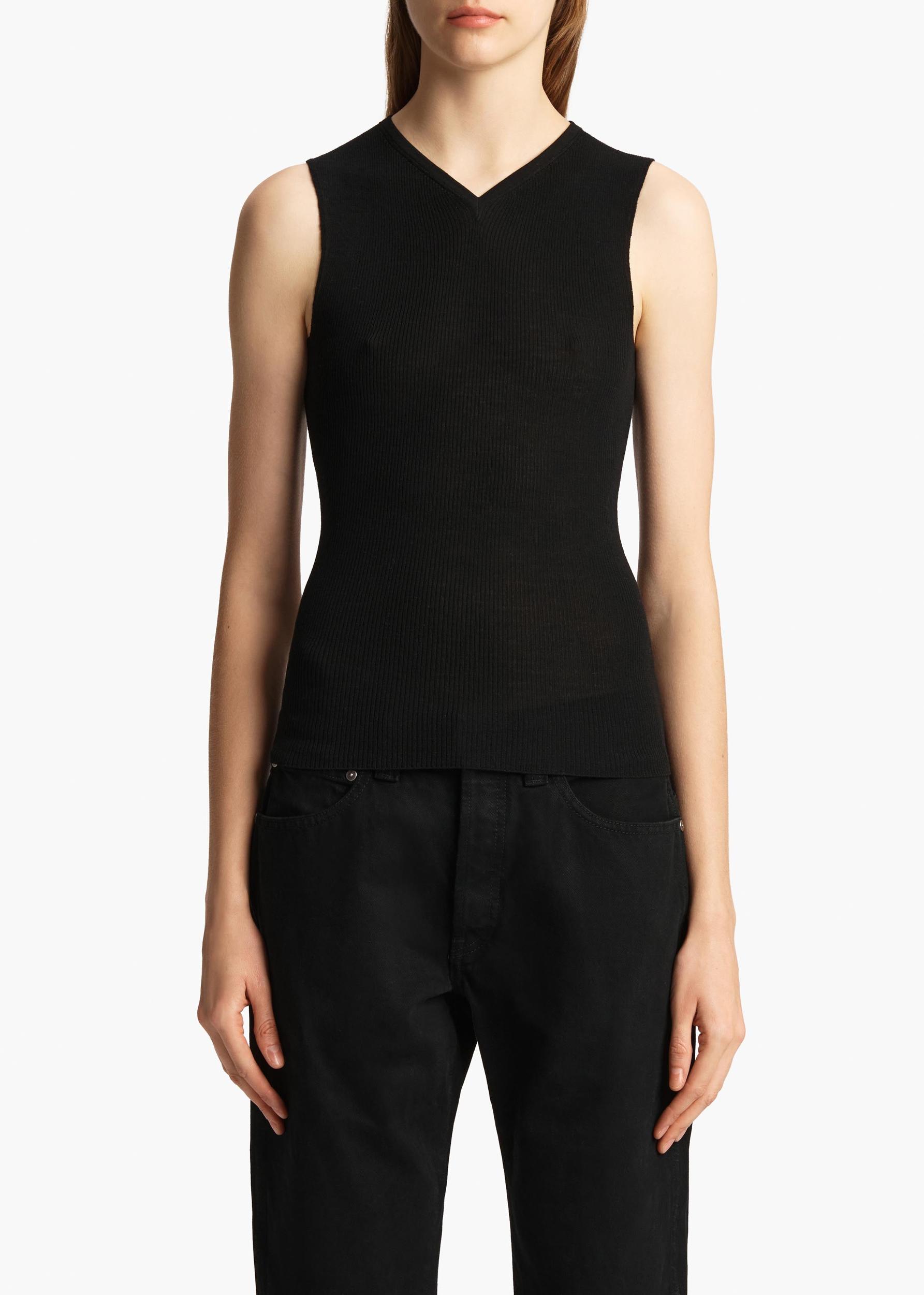A sleek, flat-ribbed sleeveless top made soft and breathable by especially fine Merino wool. With refined trim at high v-neck. Designed to layer with ease.
