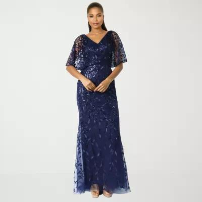 Rene by Rene Ruiz Collection Womens Elbow Sleeve Embroidered Evening Gown