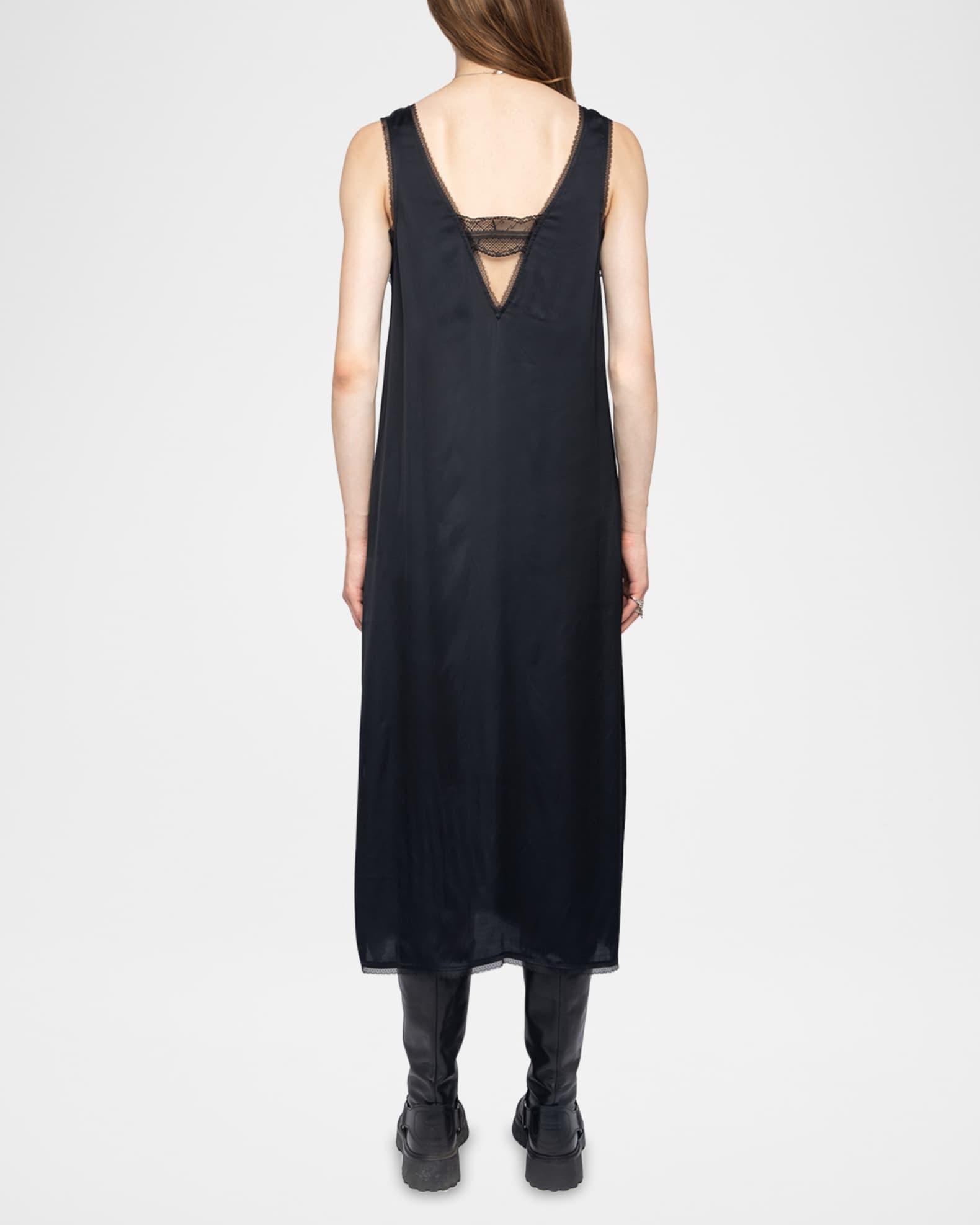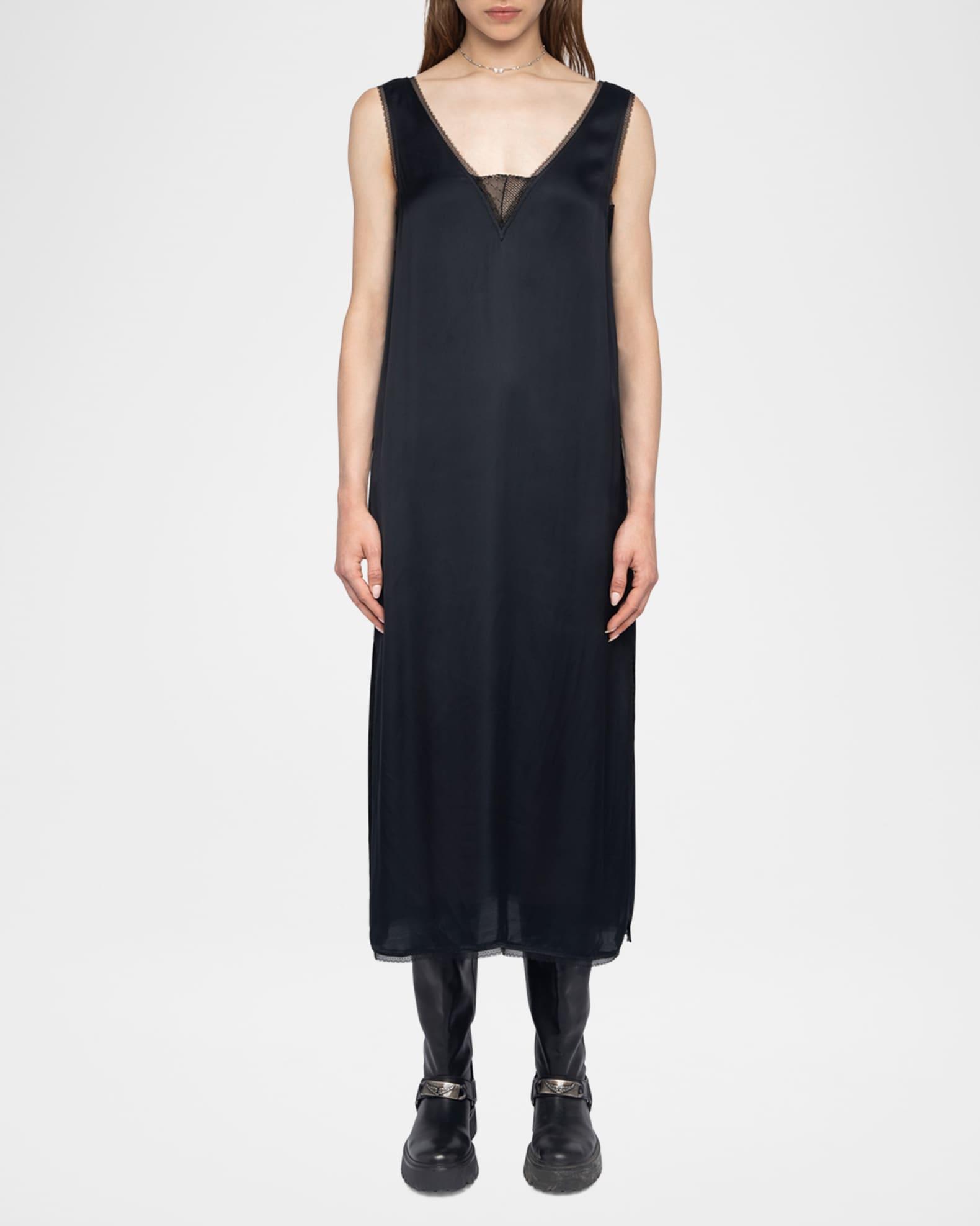 Accented with feminine lace trim, the Renzo slip dress by Zadig & Voltaire is crafted from lustrous satin V neckline Sleeveless Relaxed fit Hem falls below the knee Slipover style Viscose Machine wash cold, line dry Imported