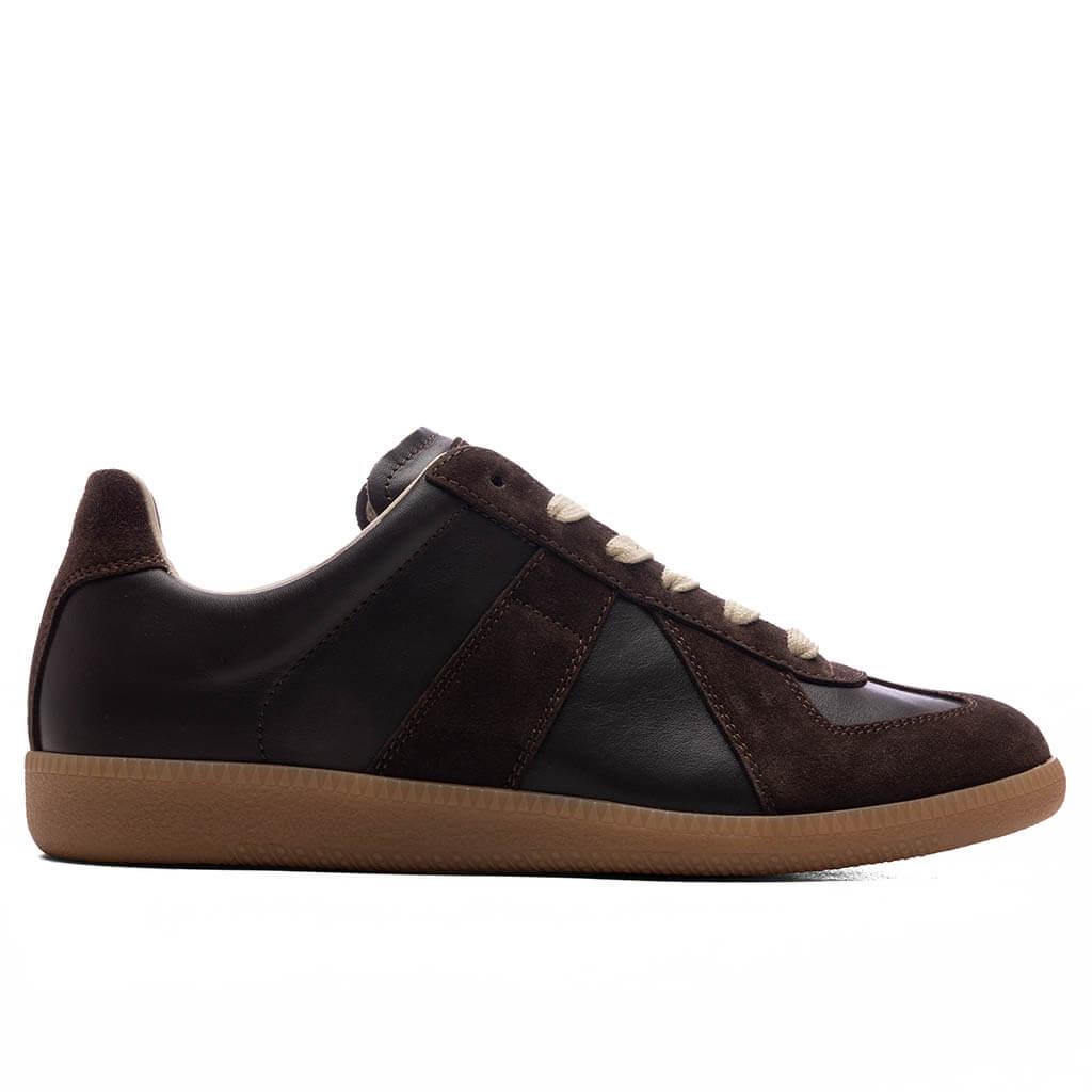 Maison Margiela’s Replica Low Top is constructed with calf leather and suede overlays emphasizing its high-quality composition. Intricate detailing can be seen with the stitched detailing and thin tongue design. The fashion label’s signature branding can be seen within the insole. The Dark Brown colorway encompasses the upper and rubber sole completing its monochromatic design. 100% calf leather Suede overlays Fabric lining Rubber outsole All sizes are listed in U.S. Men's sizing unless stated otherwise Style No: S57WS0236 P1895 T2153