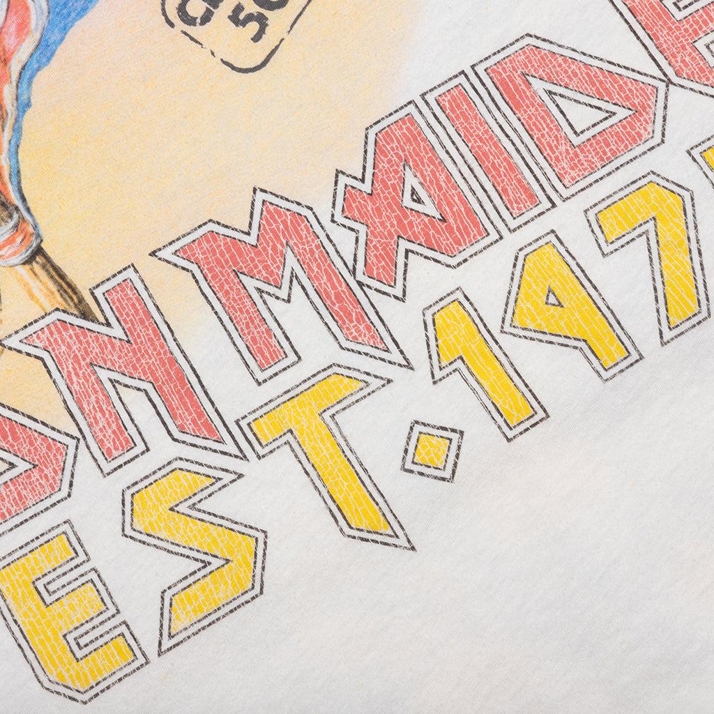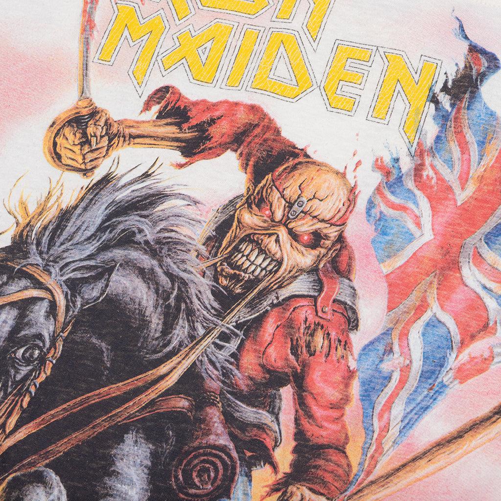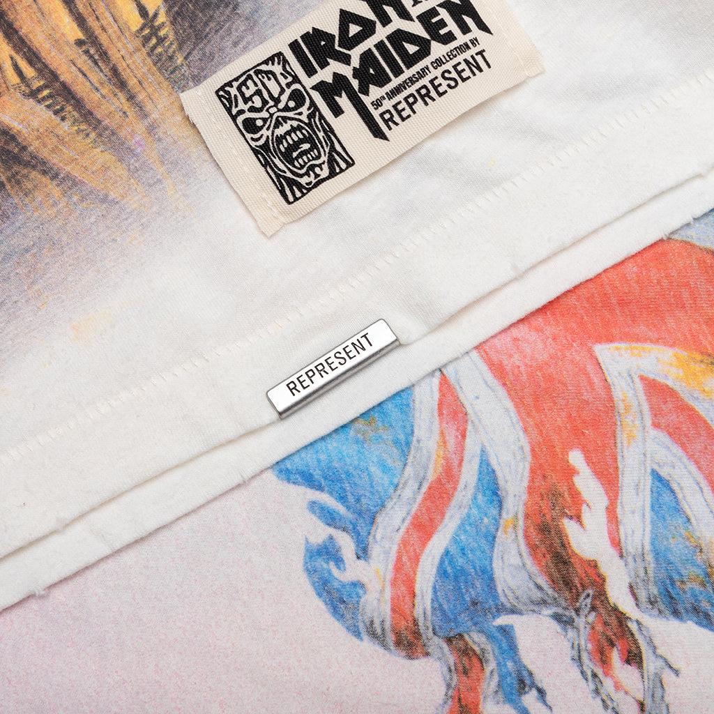 Introducing the Represent x Iron Maiden collaboration—a tribute to the band's 50th anniversary. The Represent x Iron Maiden Steed T-Shirt showcases the iconic 'Maiden England' artwork. Crafted from a soft cotton and hemp blend, this tee is cut to have a relaxed fit with a shorter length. Treated with a faded wash and distressed finish for a classic, vintage look. 85% Cotton, 15% Hemp Relaxed fit Short length Faded wash Distressed finish Ribbed collar Drop shoulders Screen-printed graphics Signature metal bar Style No: MLM100581-72 MLM100581 72