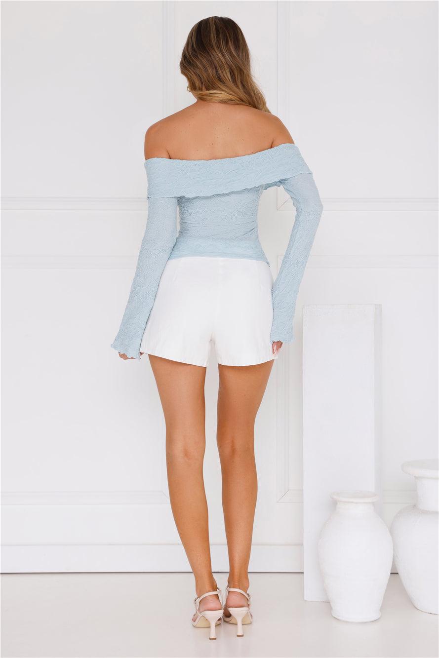 Length from bust to hem of size S: 35cm. Top. Unlined. Model is a standard XS and is wearing size XS. True to size. Stretch. Textured fabrication. Off-the-shoulder. Folded neckline. Long sleeves. Slip on. Cold hand wash only. Polyester. Designed for everyday wear, from brunches to parties. The Reputation Off Shoulder Top features an off-the-shoulder design with a folded neckline and long sleeves. Style with jeans and heels!