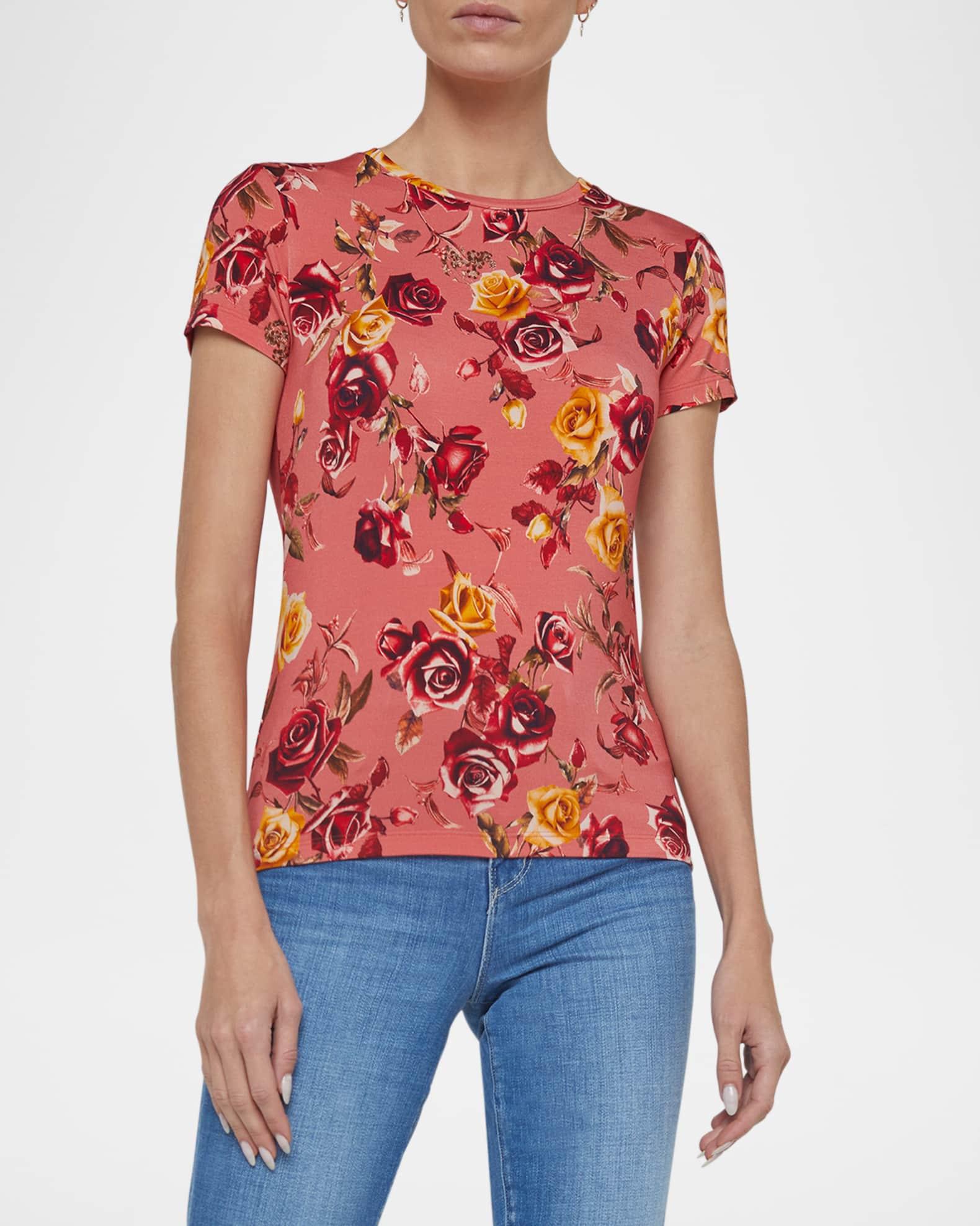 L'Agence "Ressi" classic tee featuring a western rose motif Crew neckline Short sleeves Fitted silhouette Hem sits at the hip Pullover style Promodal® rayon/spandex Made in USA