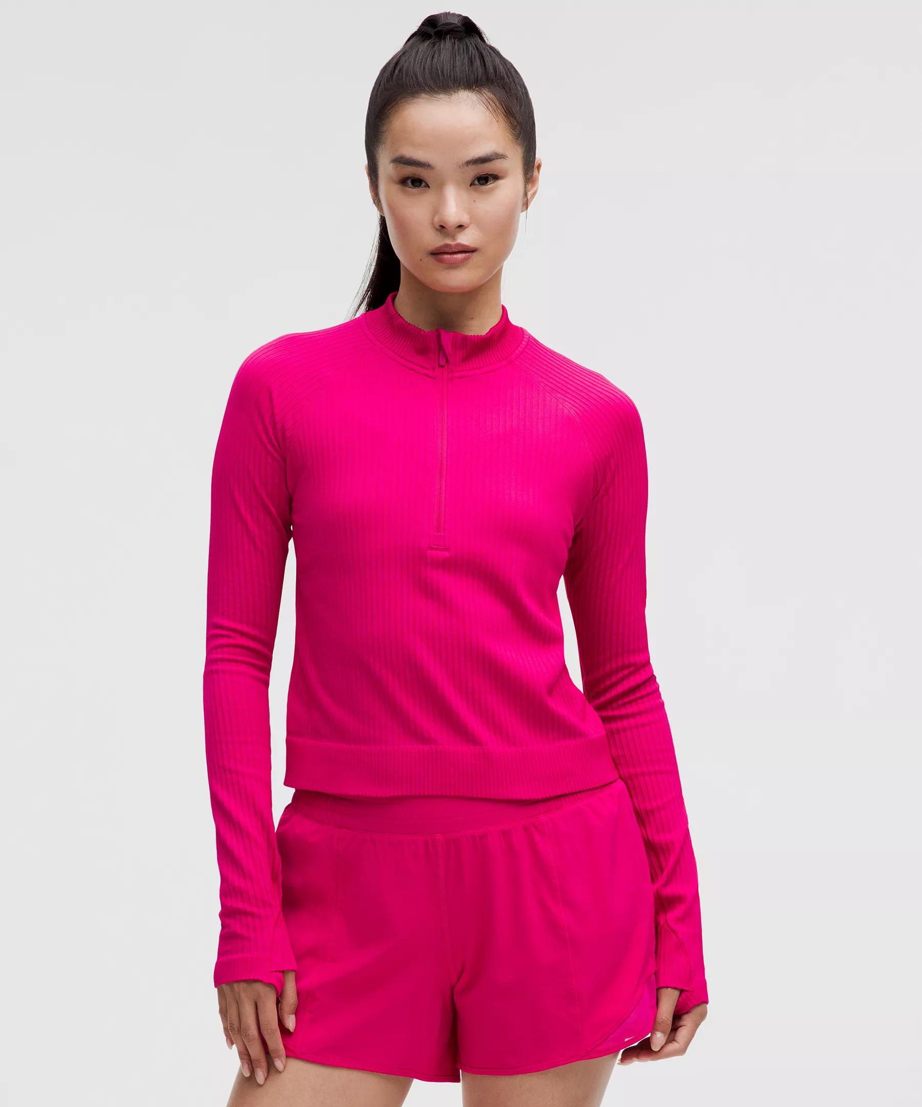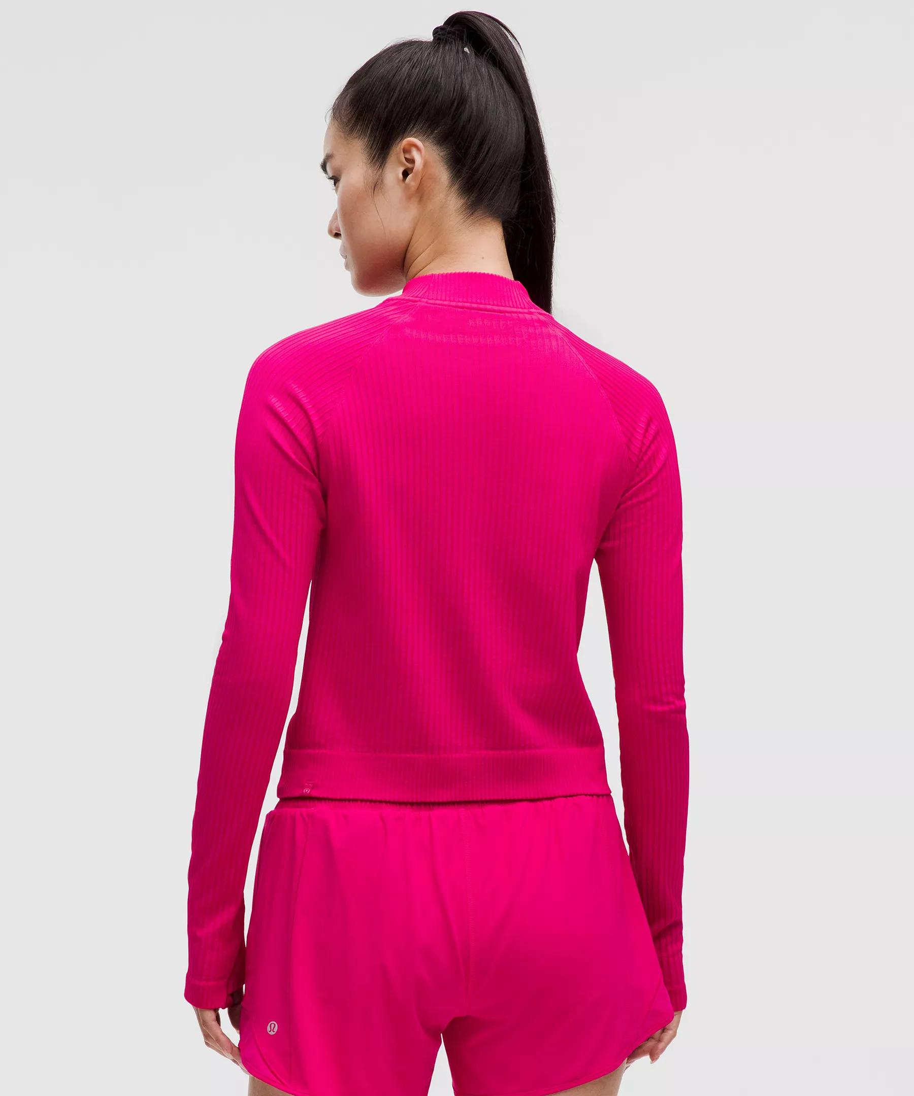 Warm on the inside to keep you going outside. Powered by seamless technology, this soft, sweat-wicking layer has a cozy interior to help keep you warm during chilly outdoor runs.