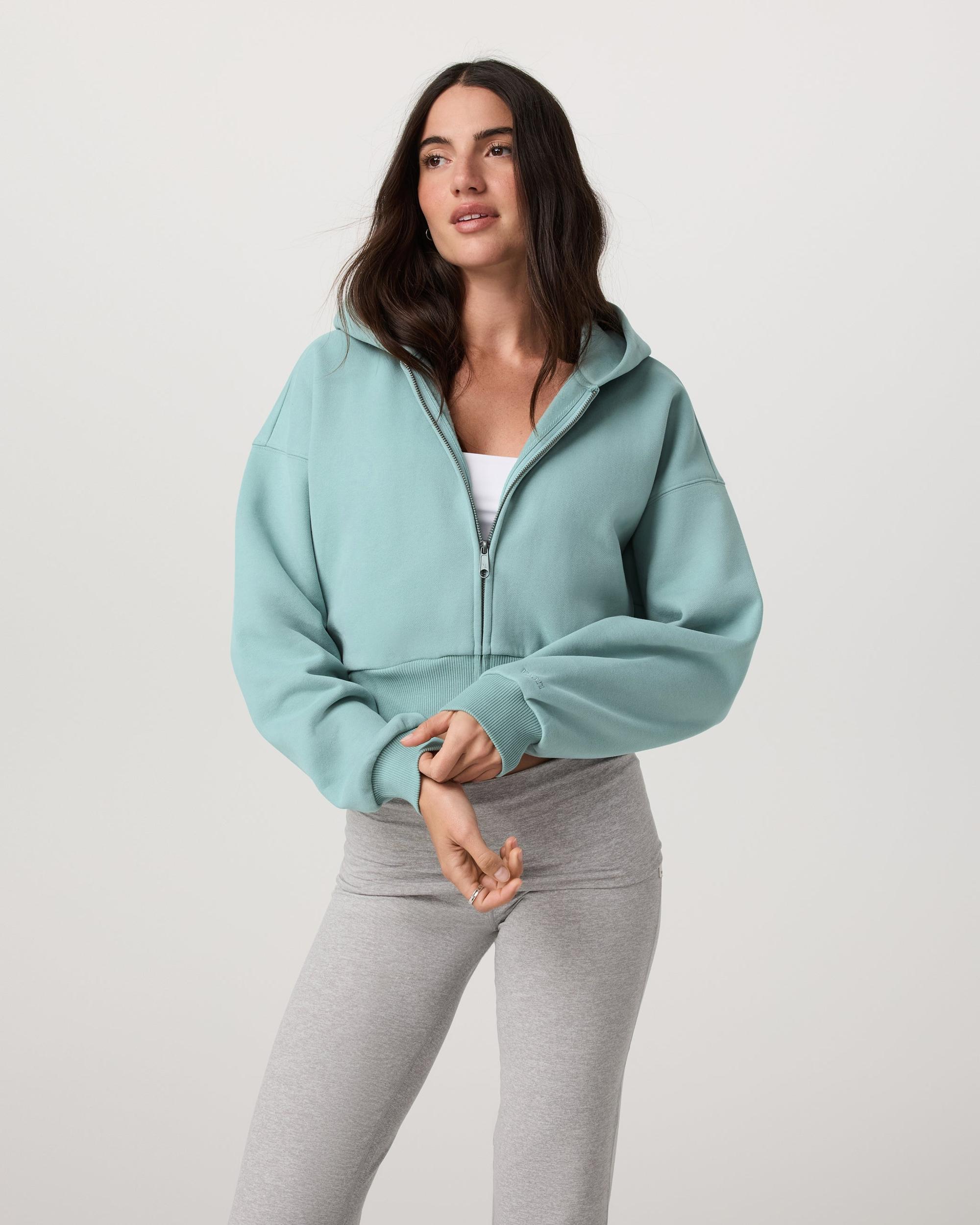 Shop the Restore Mini Full Zip Hoodie in Sea Spray at Vuori. This women’s hoodie features a cropped fit and soft French Terry for cozy everyday wear.