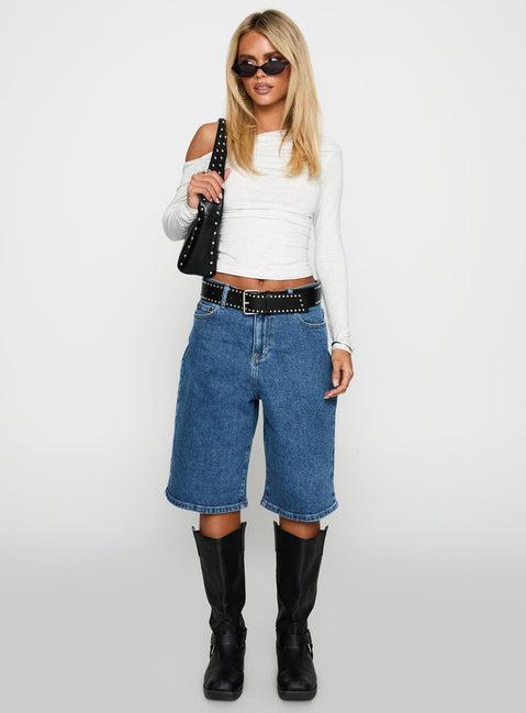 Retro Dream Mid Rise Longline Denim Shorts Mid Wash