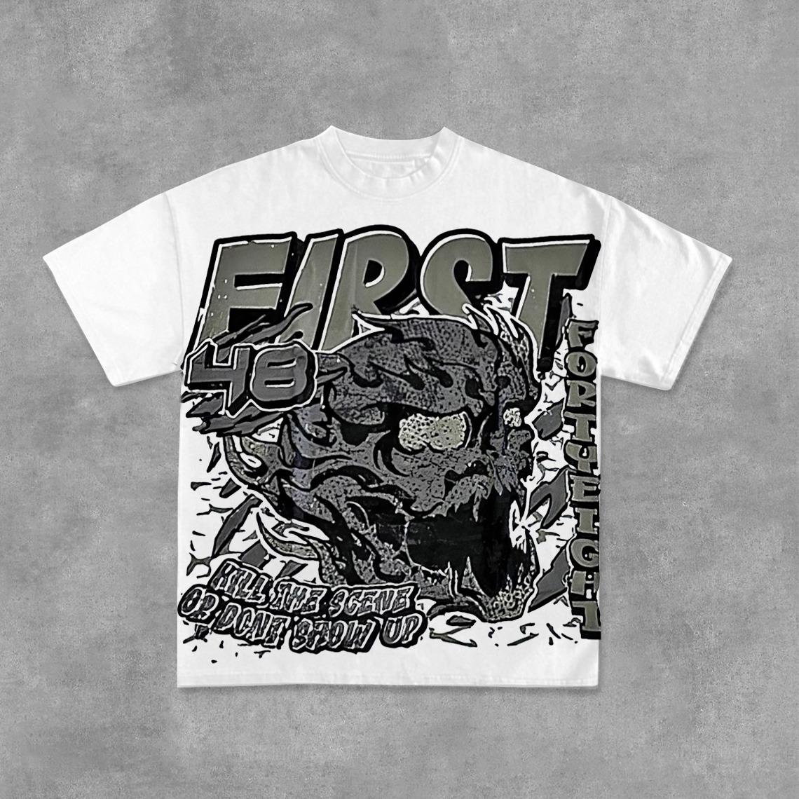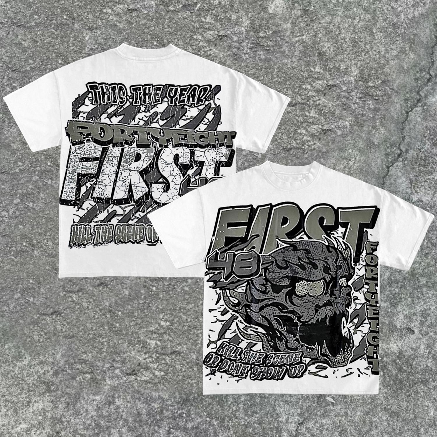 SPU: CP-118307-QX Fabric Name: 100% Cotton Pattern: Skull Letter Print Process: Printed Style: Fashion Length: Regular Collar: Round Neck Popular Elements: Skull Letter Print Sleeve Type: Short Sleeve Occasion: Daily Theme: Summer