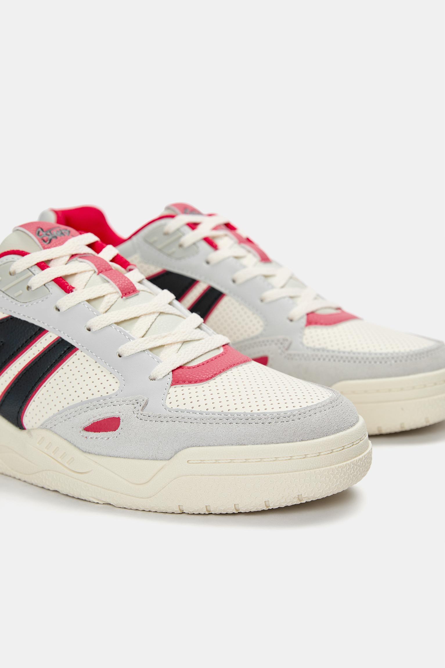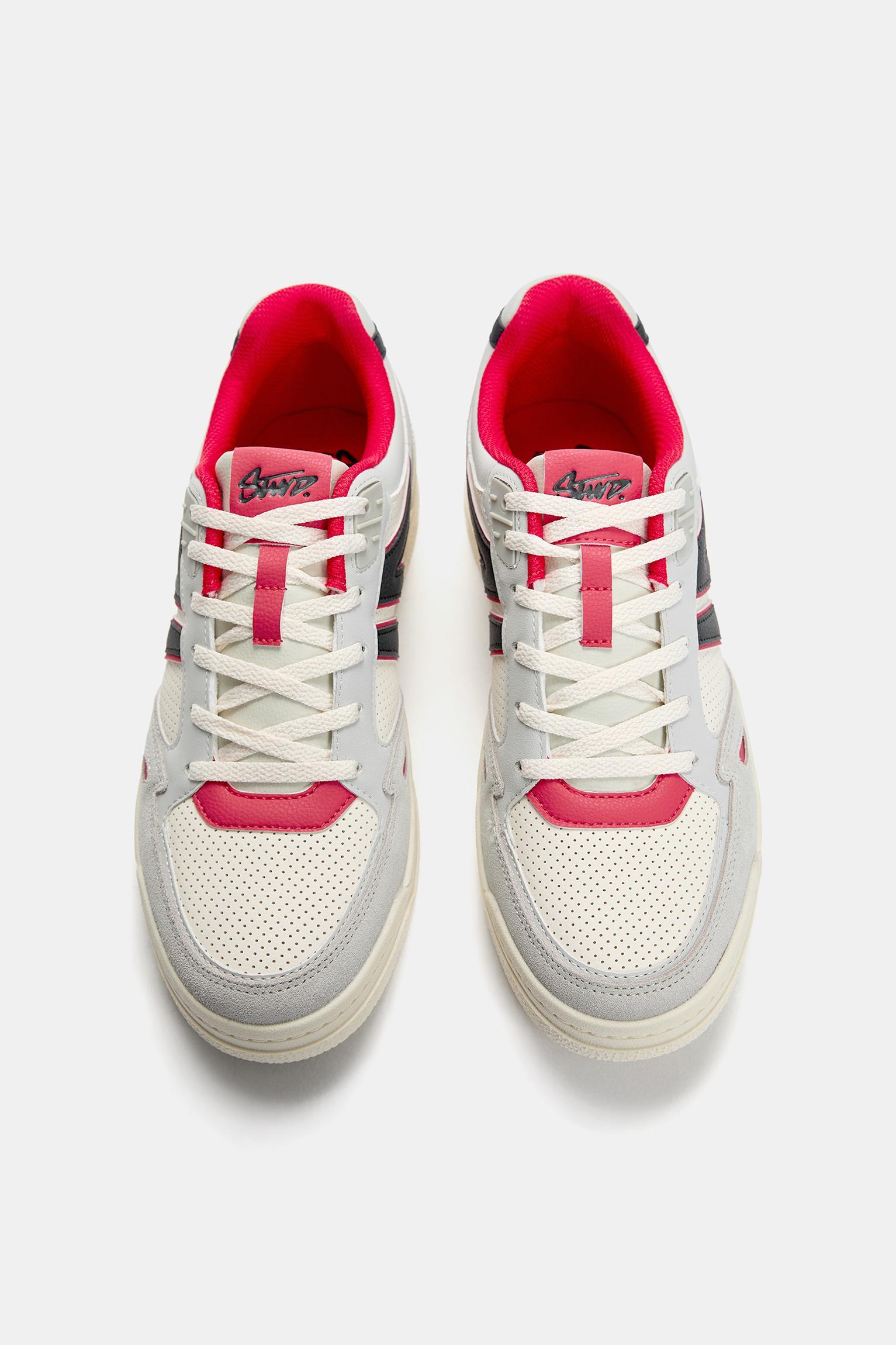 Sneakers available in several colors. Combination of materials and pieces on the upper. Leather pieces with a split leather finish. Lace-up fastening. OrthoLite® inner insole Sole height: 2 cm.