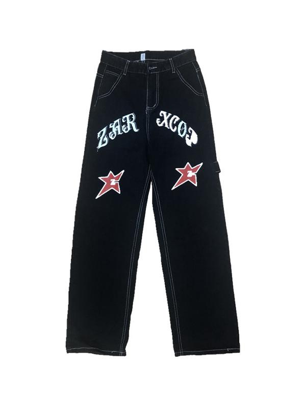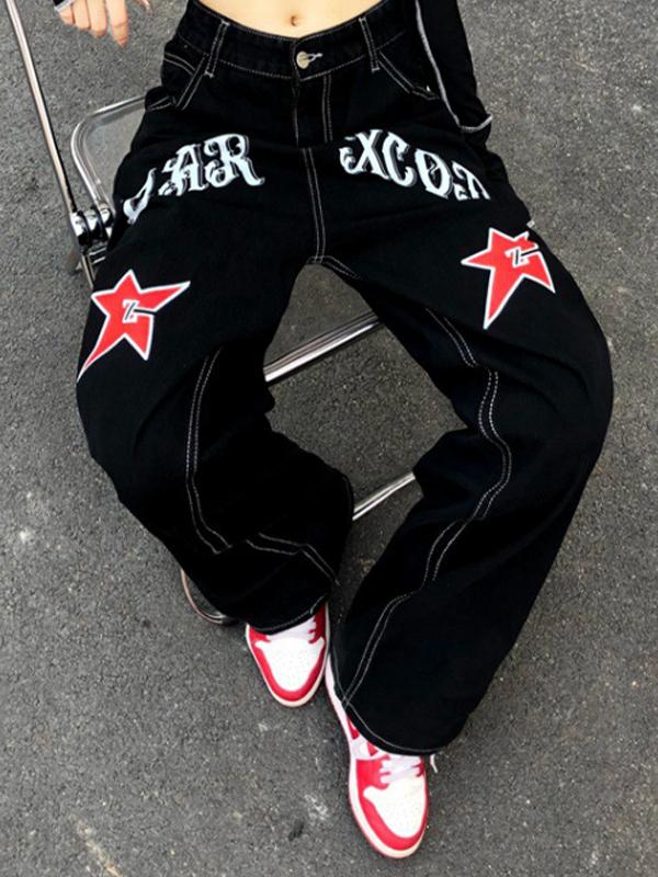 Retro Star Letter Print Boyfriend Jeans