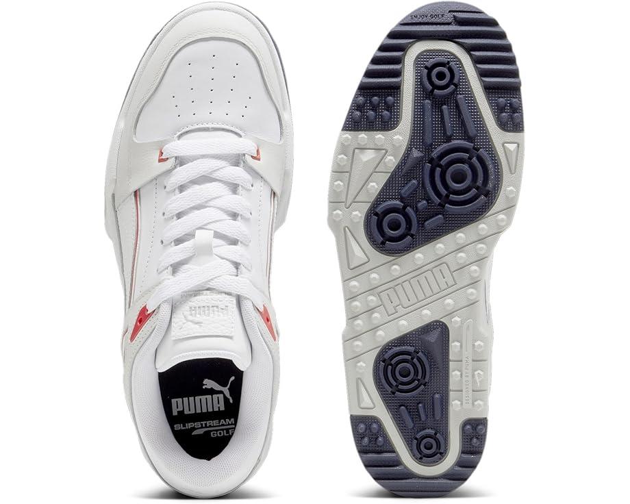 Get the goodness of superior cushioning and supportive comfort wearing PUMA® Golf Slipstream-G Sneakers that feature a sporty design with lace-up closure. The sneakers come with a leather upper, textile lining, and textile & polyurethane footbed.