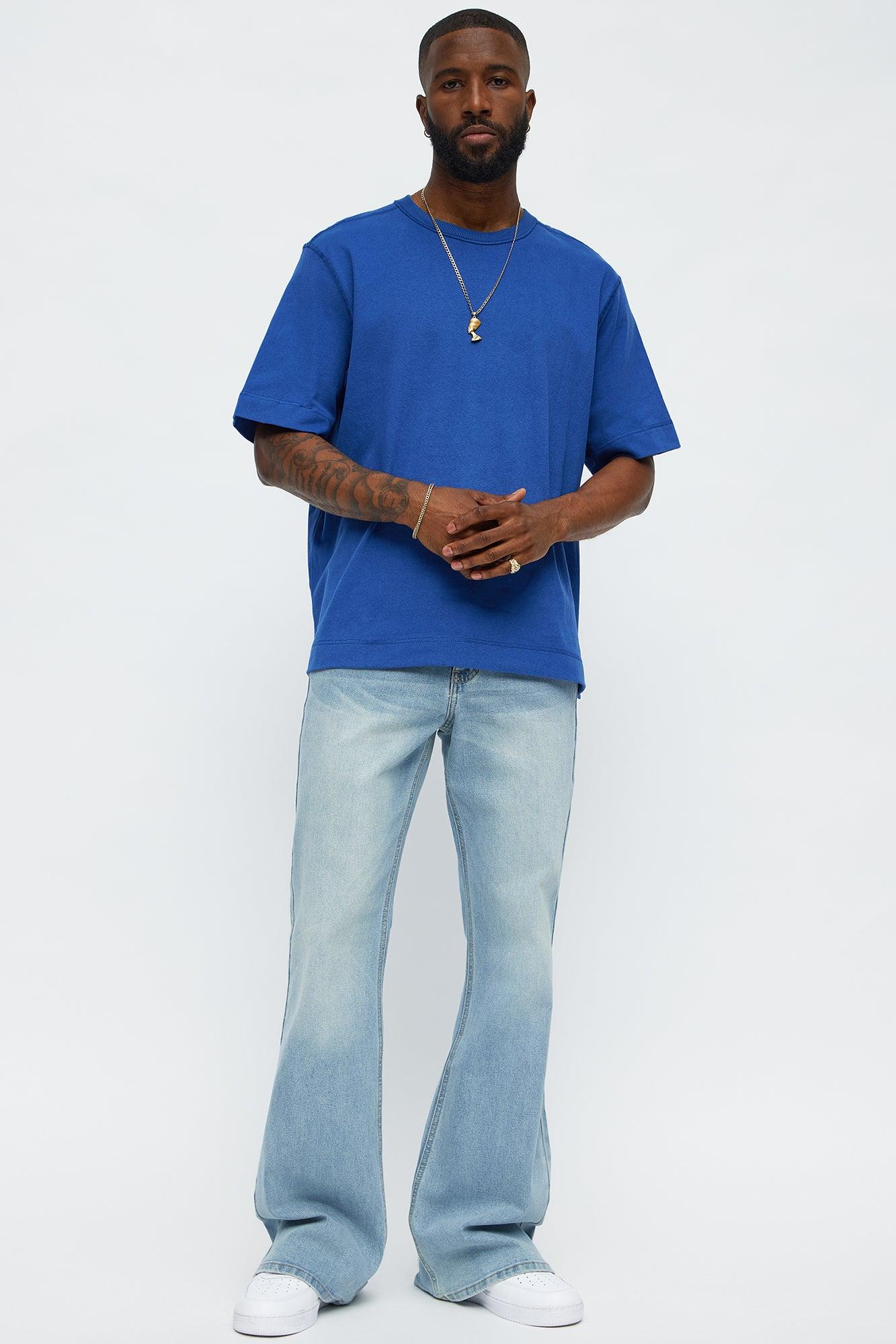 Reverse Seam Cotton Short Sleeve Crew - Blue Wash