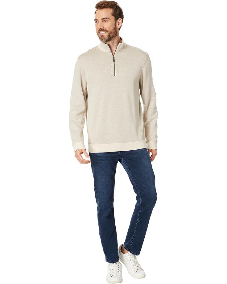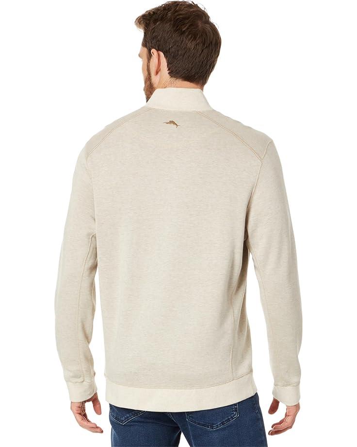 Unwind in style wearing the Tommy Bahama® Flip Coast 1/2 Zip. Crafted from soft fabrication, it features stand collar neckline, half zippered closure, and long sleeves. It comes with tipped rib collar, cuffs, hem and decorative stitch detailing.