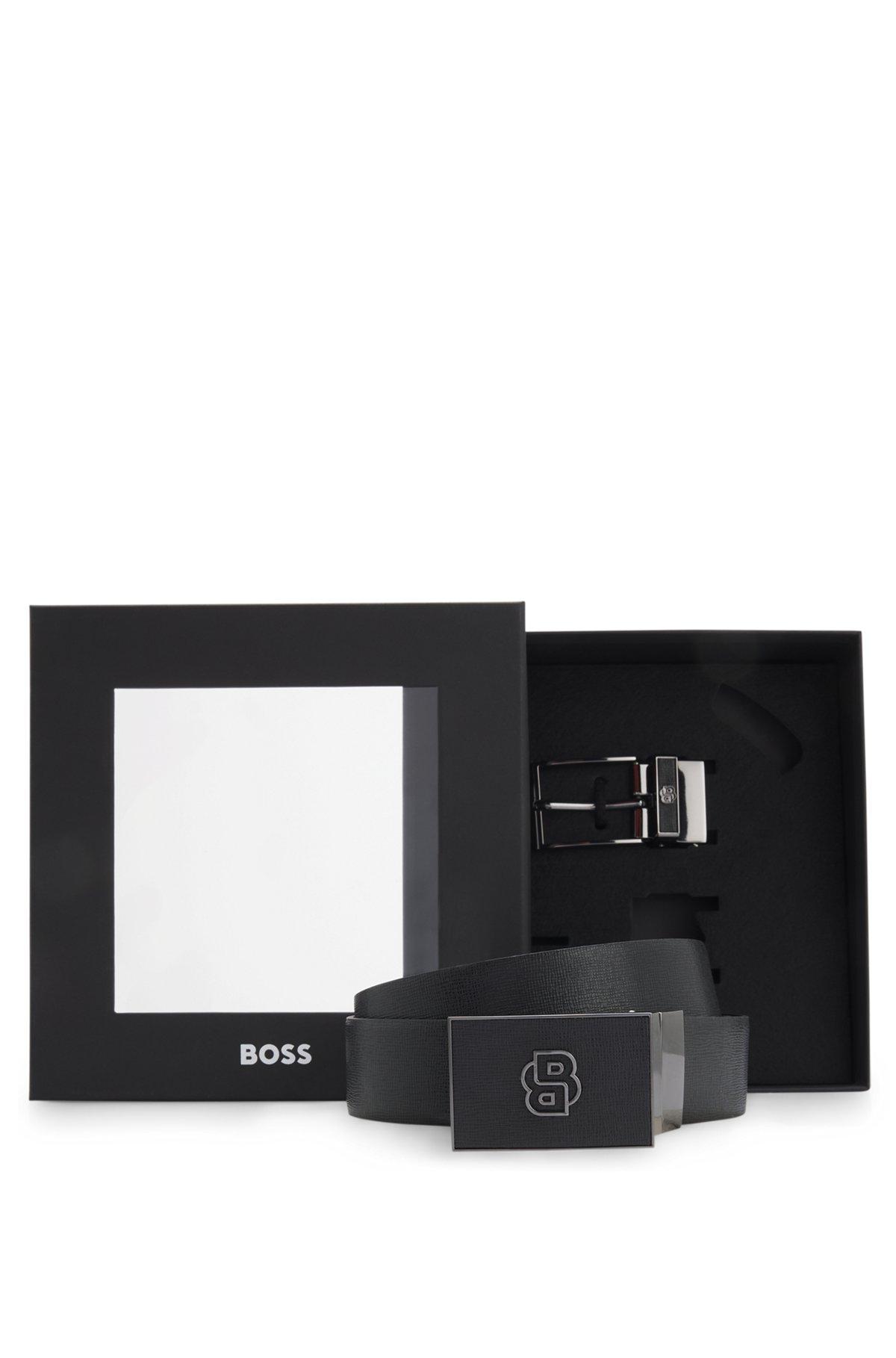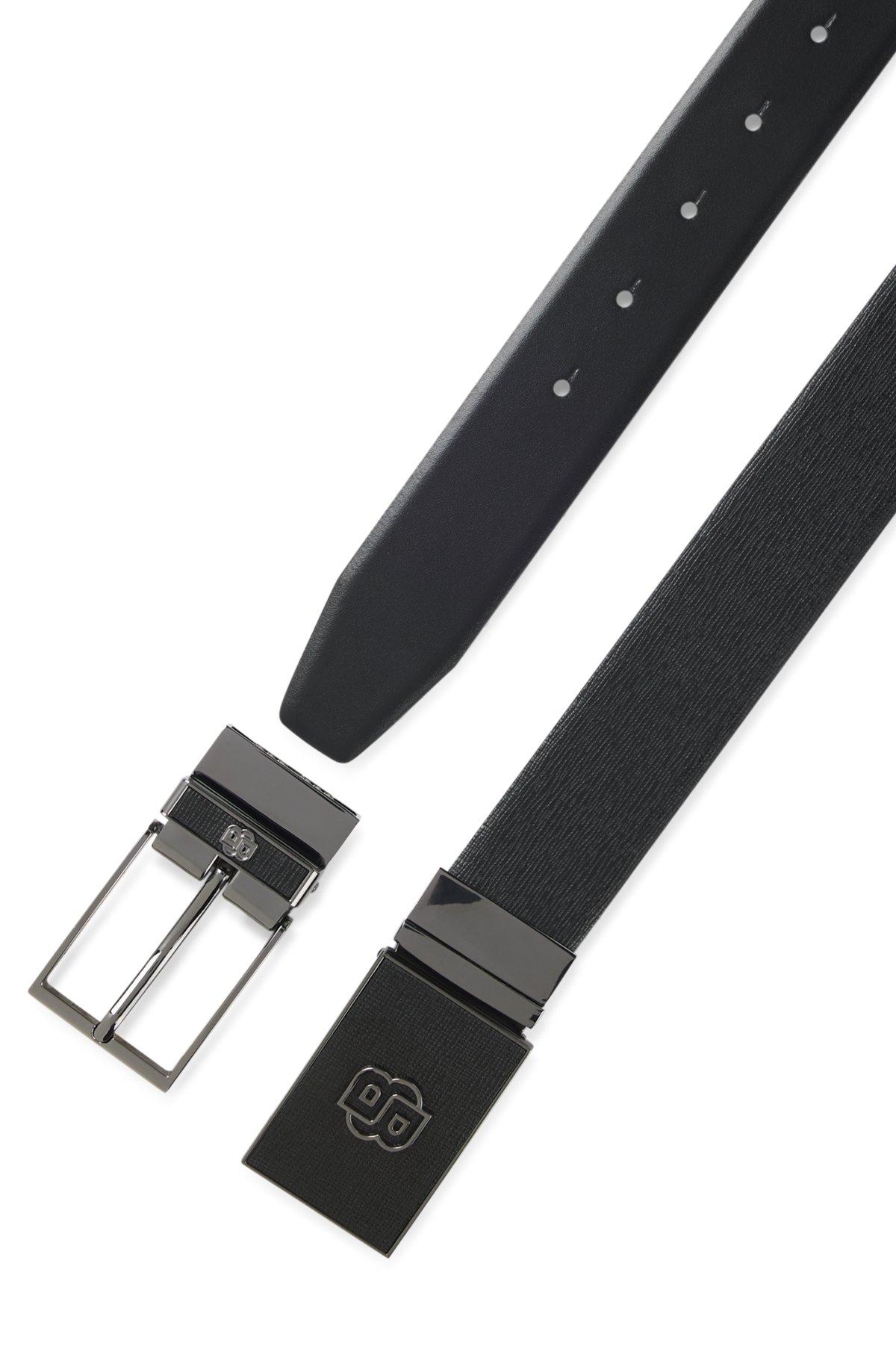 Offering plain and structured Italian leather, this reversible BOSS Menswear belt features plaque and pin buckles with Double B monograms. Made in Italy. 3.5 cm – 1.38 inch width.