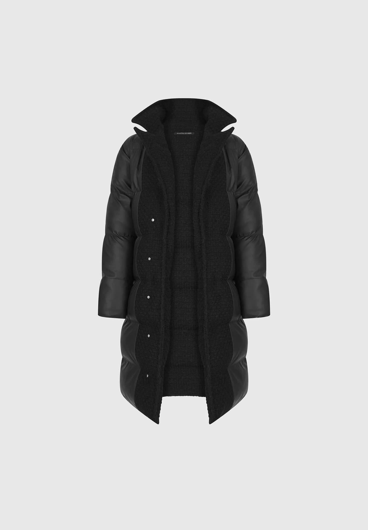 This coat is the perfect versatile piece for the season as you can choose between borg or matte fabric. The matte side has borg accents for textural contrast and silver snap poppers for fastening. The soft borg keeps you comfy and enhances the warmth through the thick padding. Longline Puffer Coat Silhouette Reversible Between Borg and Matte Fabric Vegan Leather Soft Touch Borg Fabric Side Slip Pockets Silver Snap Popper Fastening Silver Manière De Voir Eiffel Plaque on Arm Silver 3D Manière De Voir Plaque