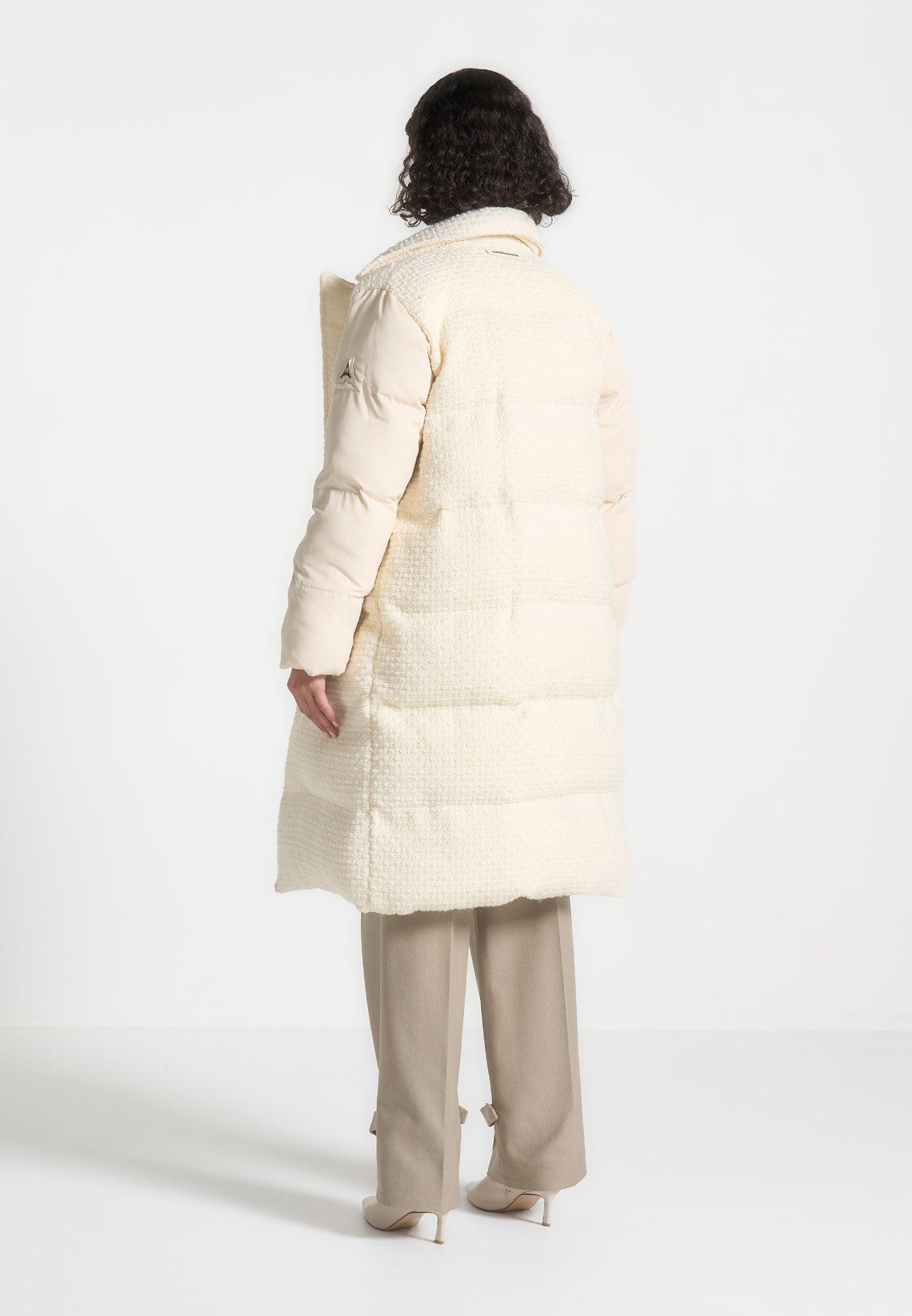 This coat is the perfect versatile piece for the season as you can choose between borg or nylon fabric. The nylon side has borg accents for textural contrast and silver snap poppers for fastening. The soft borg keeps you comfy and enhances the warmth through the thick padding. Longline Puffer Coat Silhouette Reversible Between Borg and Nylon Fabric Soft Touch Borg Fabric Side Slip Pockets Silver Snap Popper Fastening Silver 3D Manière De Voir Plaque