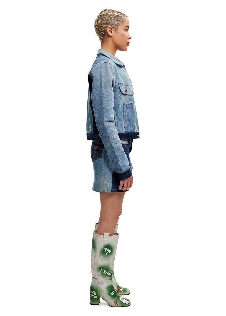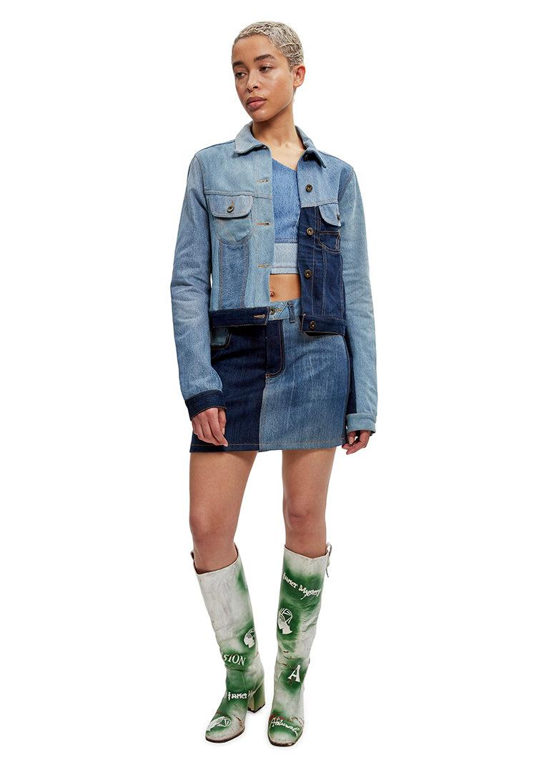 Description: The Rework Denim top is constructed using repurposed vintage garments in three different shades; therefore, each piece is unique. The top features adjustable shoulder straps, antique brass hardware and is fully lined for added comfort. Exclusively available at Ahluwalia.world. Sizing: Click here for size guide. For further sizing assistance please contact us on