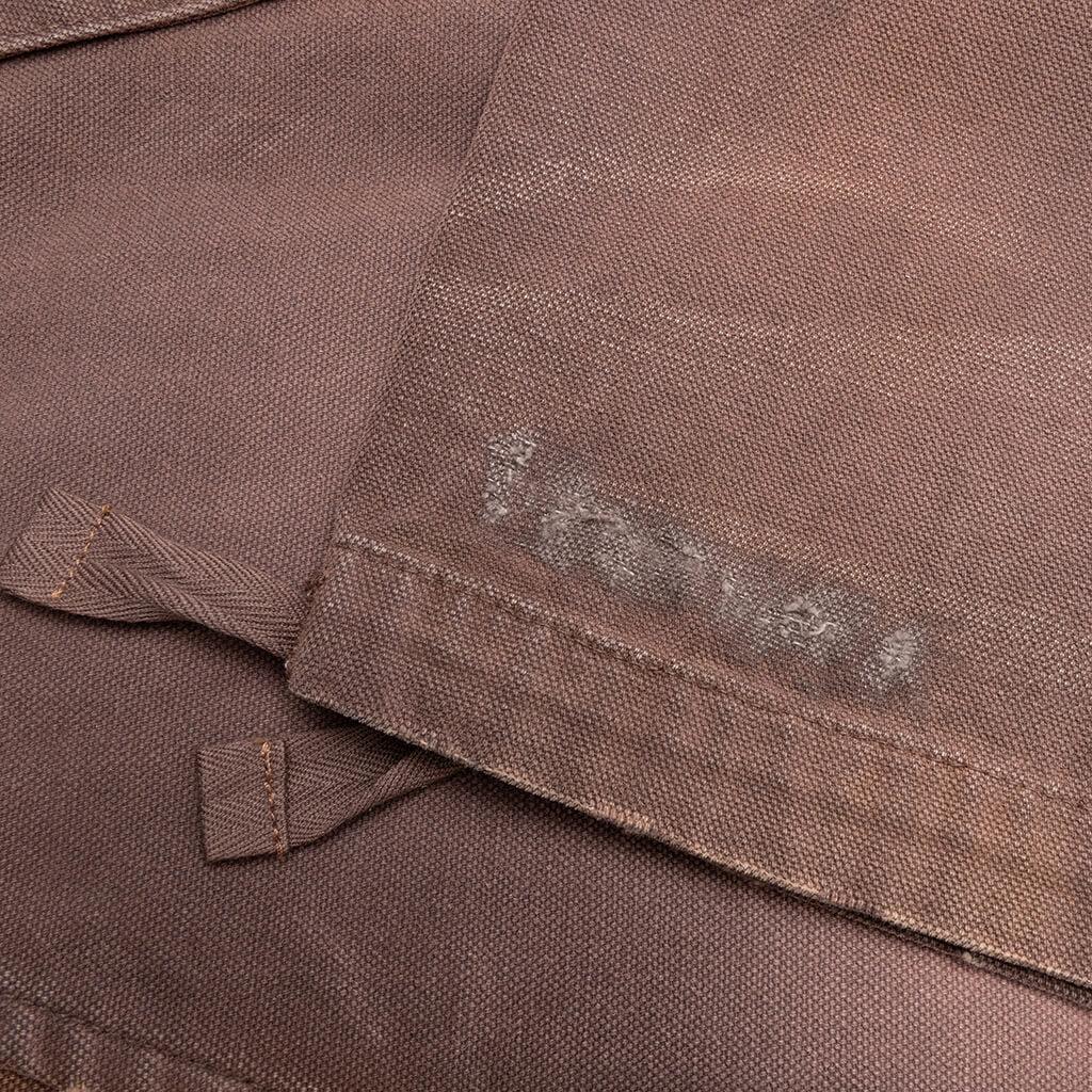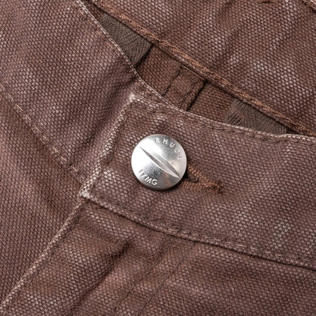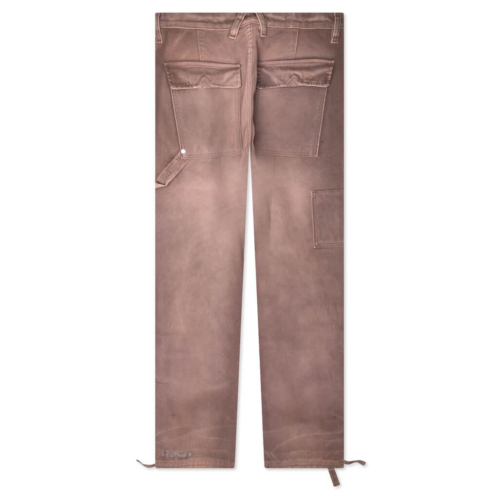 The Reza Double Knee Pant from Rhude features a mid-rise and slightly flared fit, offering a modern silhouette. The cotton twill construction is highlighted by tonal topstitching in a paneled design. Adorned with custom RHUDE hardware. Featuring a zip fly with button closure, with two side pockets and two rear flap pockets. The distressed and faded detailing on the front and rear adds a unique touch. Adjustable cuffs with raw-cut details provide a personalized fit. 100% Cotton Standard fit Mid-rise Rhude hardware Zip fly + button closure Distressed detailing Faded wash Adjustable cuffs Style No: RHFW23PA11320671-ESP FW23PA11320671 ESPR