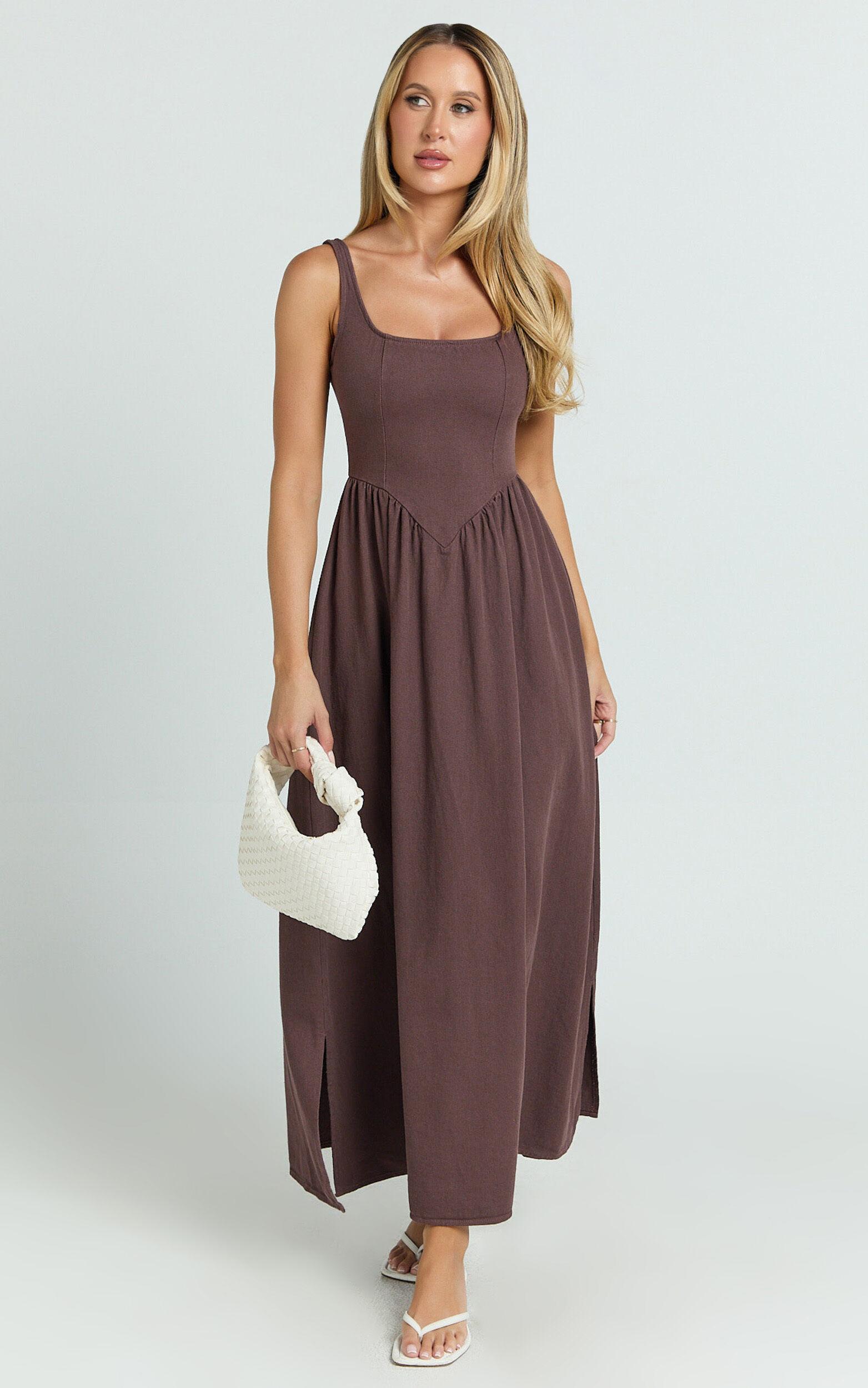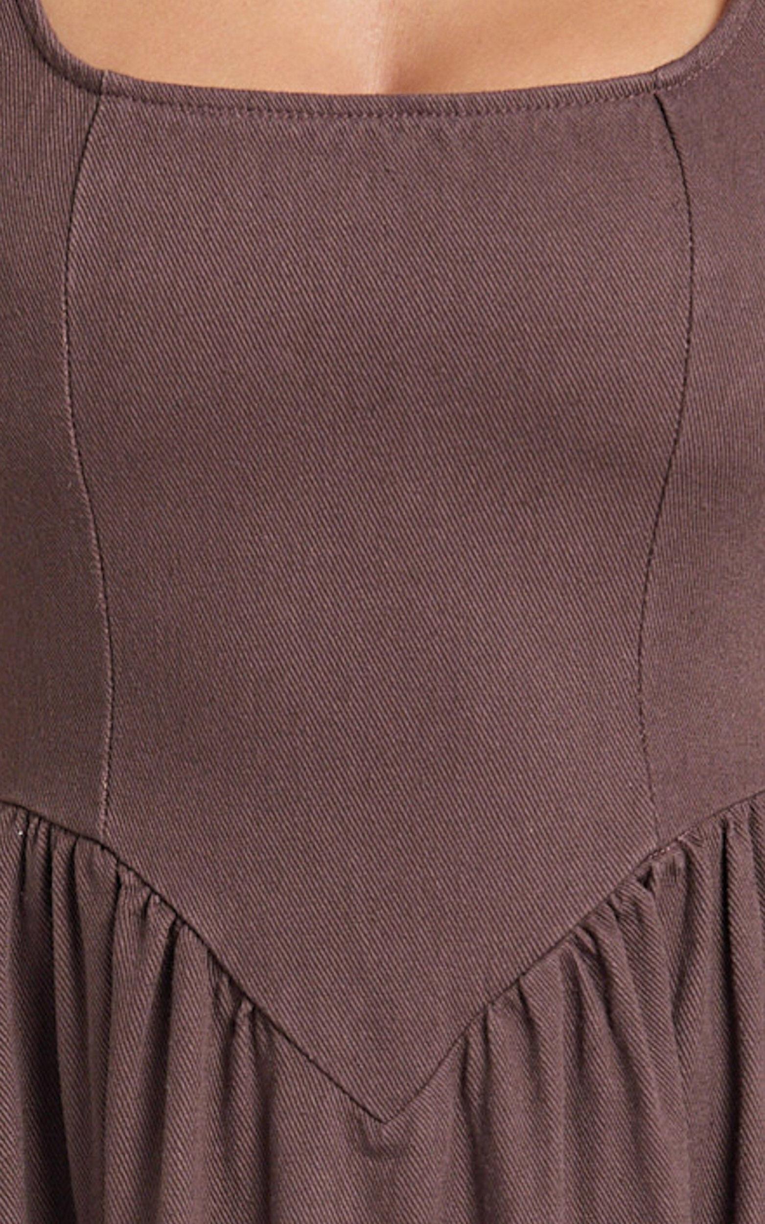 Step into style with our Rhaziya Midi Dress, a true testament to timeless elegance and effortless chic. This Sleeveless Straight Neck Fit And Flare Dress in a rich Chocolate hue is the epitome of sophistication, seamlessly blending classic design with a modern twist that's perfect for today's empowered woman. Whether you're a Gen Z trendsetter or a Millennial fashionista, this piece promises versatility and charm that transcends generations.Product Details:Fit & Flare DressDrill FabricStraight NecklineCasual WearMidi LengthSleevelessCotton MaterialMaterial and CareMain Fabric: 100% Cotton Lining: 100% RayonLow / No stretchNatural FibresThe main fabric of this product is made from 100% Natural Fibres. Whilst some of these fibres still have detrimental impacts in their supply chain, Natural Fibres have a reduced overall impact compared to a raw polyester.
