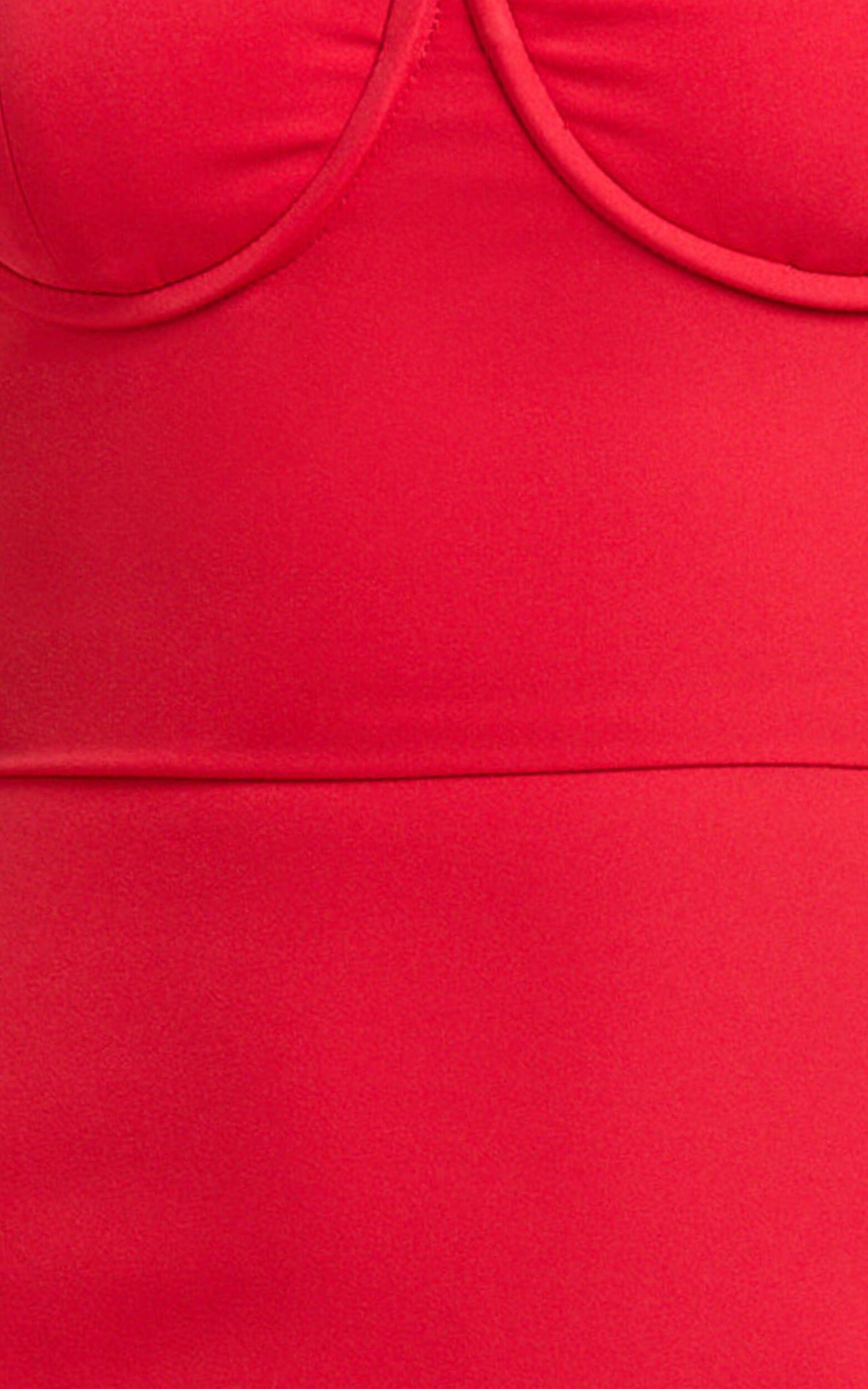 Get ready to turn heads in the Rhea Mini Dress – your new go-to party day essential! This strapless bodycon dress features a flattering sweetheart neckline and a structured bustier bodice that highlights your curves in all the right ways. The drop waist and flirty frill hem skirt add a playful edge, while the vibrant raspberry pink hue keeps things fun and fresh.Product Details:Bodycon mini dressCrepe fabricSweetheart necklineStrapless styleInner liningZipper closurePerfect for partiesMade from polyesterSize and FitSize S / 8 length: 64cm / 25.2inStudio model is wearing size XS / 6 AU / 2 US / 6 UK / 34 EUStudio model's height is 174cm / 5'9''Material and CareLining: 96% Polyester, 4% Spandex Main Fabric: 97% Polyester, 3% SpandexLow Stretch