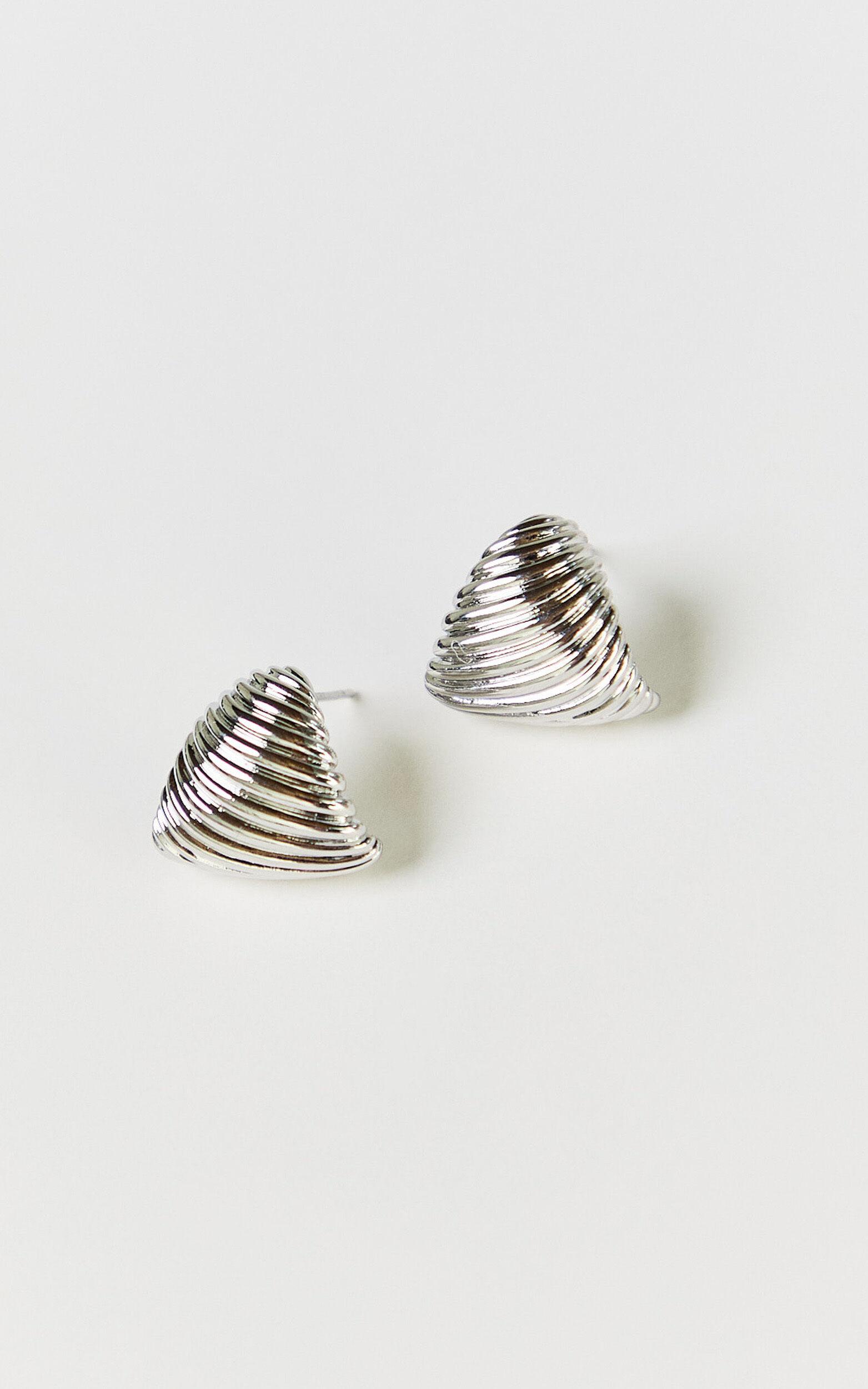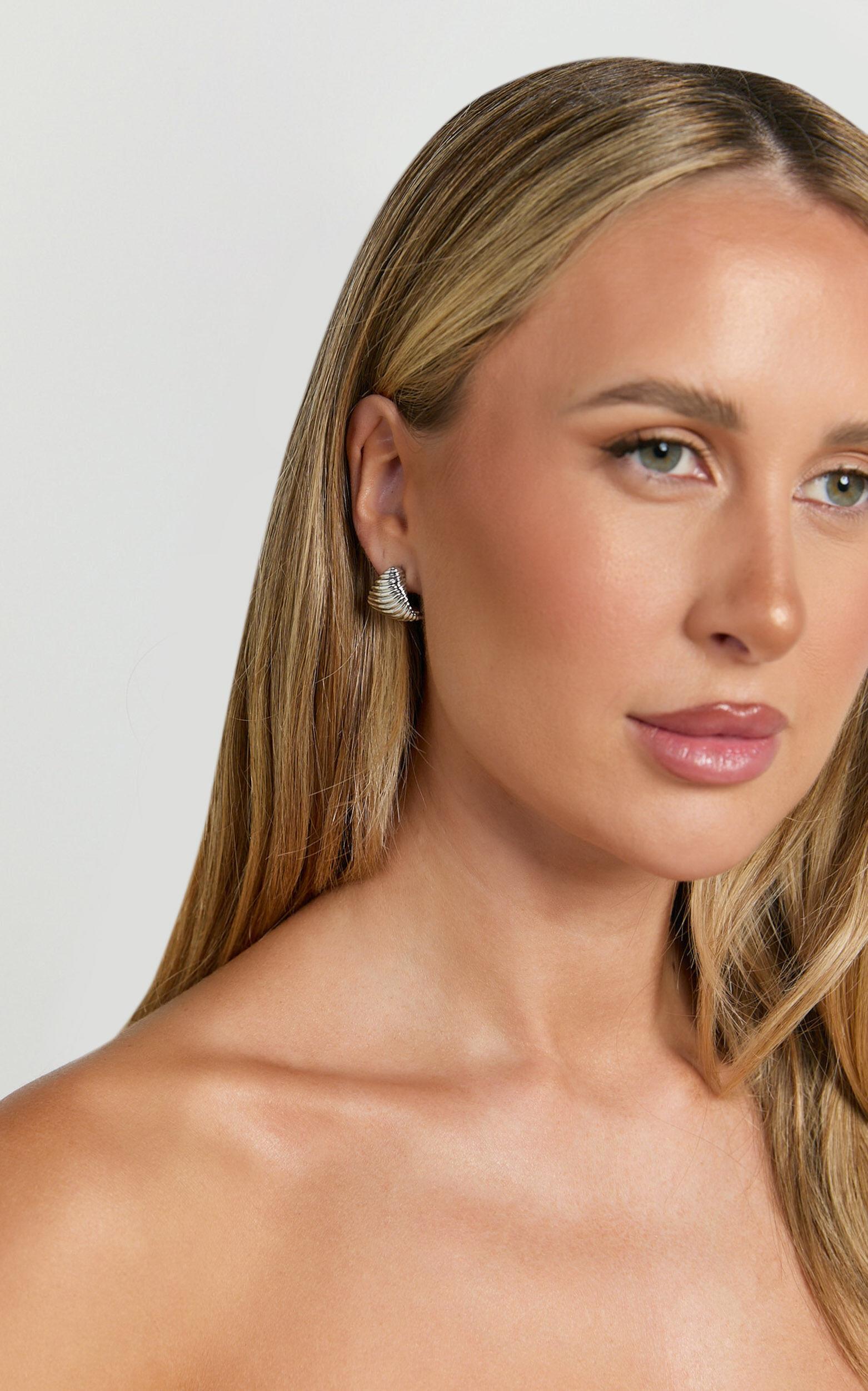Rhianna Earrings - Ridge Stud Earrings in Silver