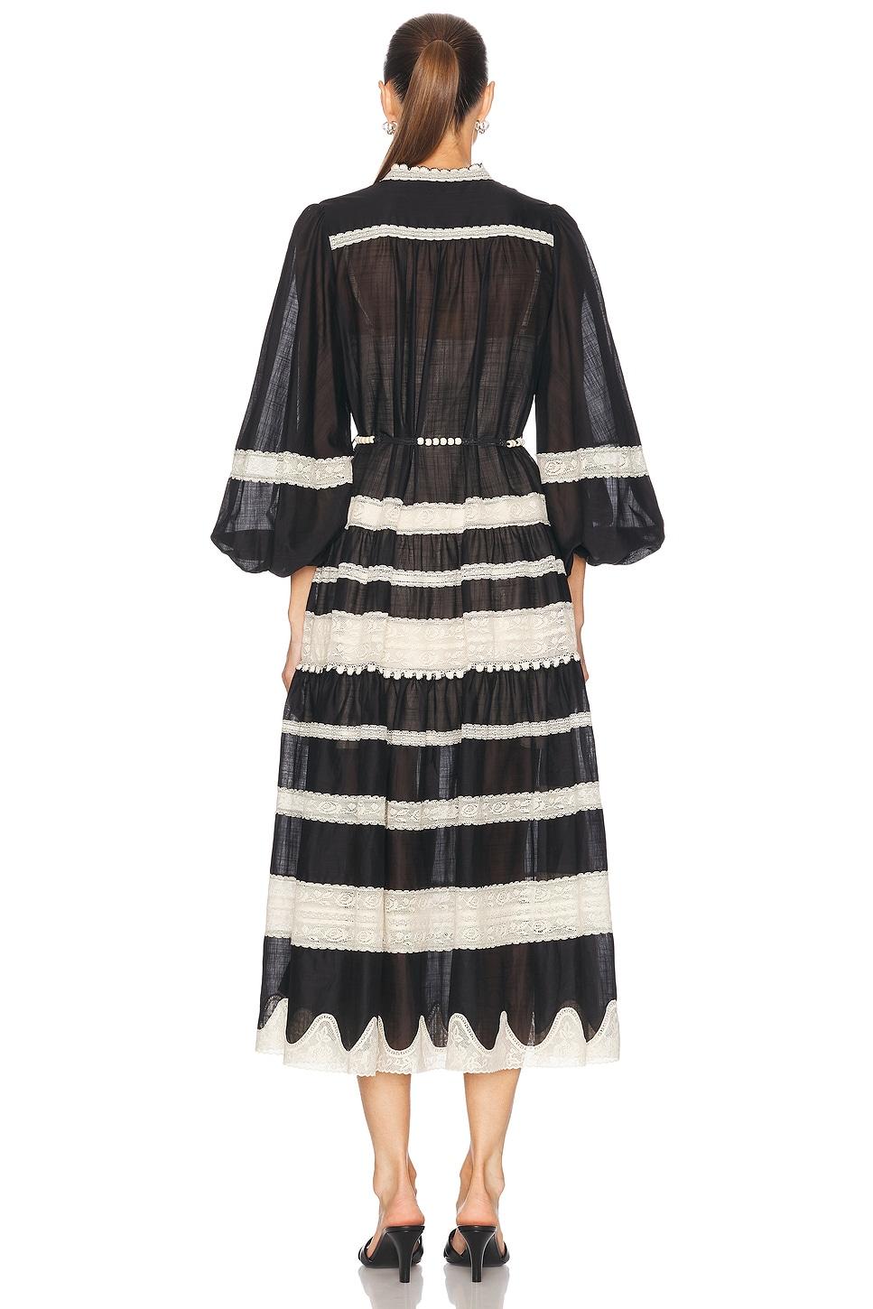 dressSelf: 100% cottonLining: 86% recycled polyester, 14% elastaneContrast Fabric: 100% polyester / Dry clean only / Partially lined with detachable and adjustable slip / Front button closure / Detachable belt with beaded detailing and tie closure / Midweight lace fabric / Relaxed fitTrue to size / Made in China / Our Style No. ZMER-WD756 / Manufacturer Style No. 3227DSS251 / Model is wearing size 1/S